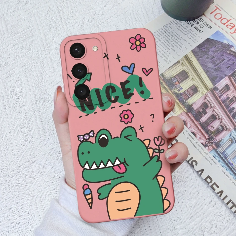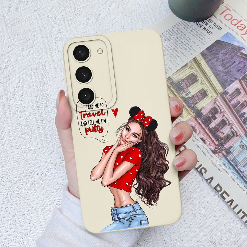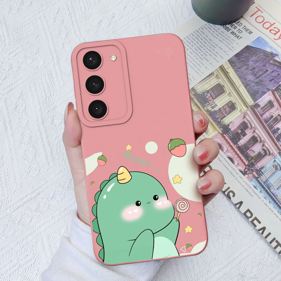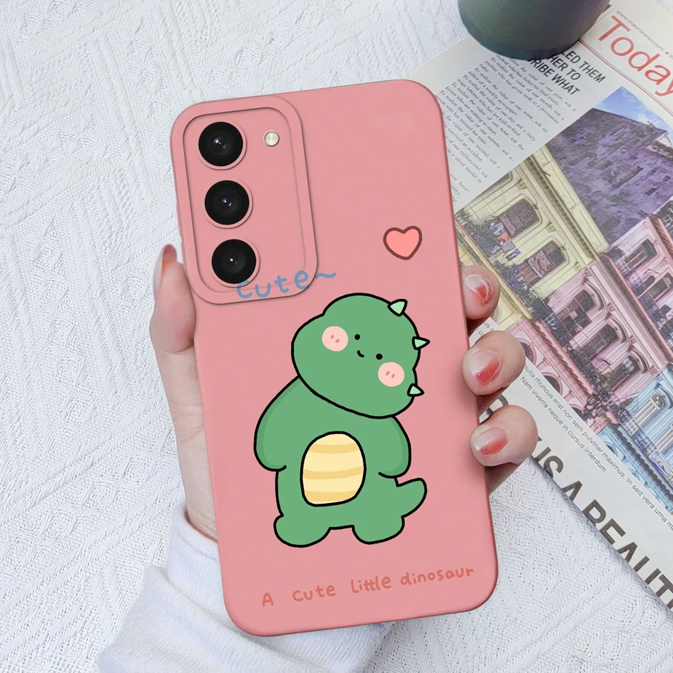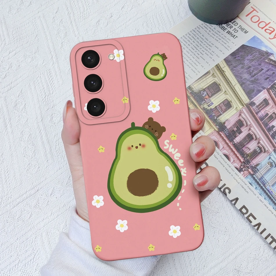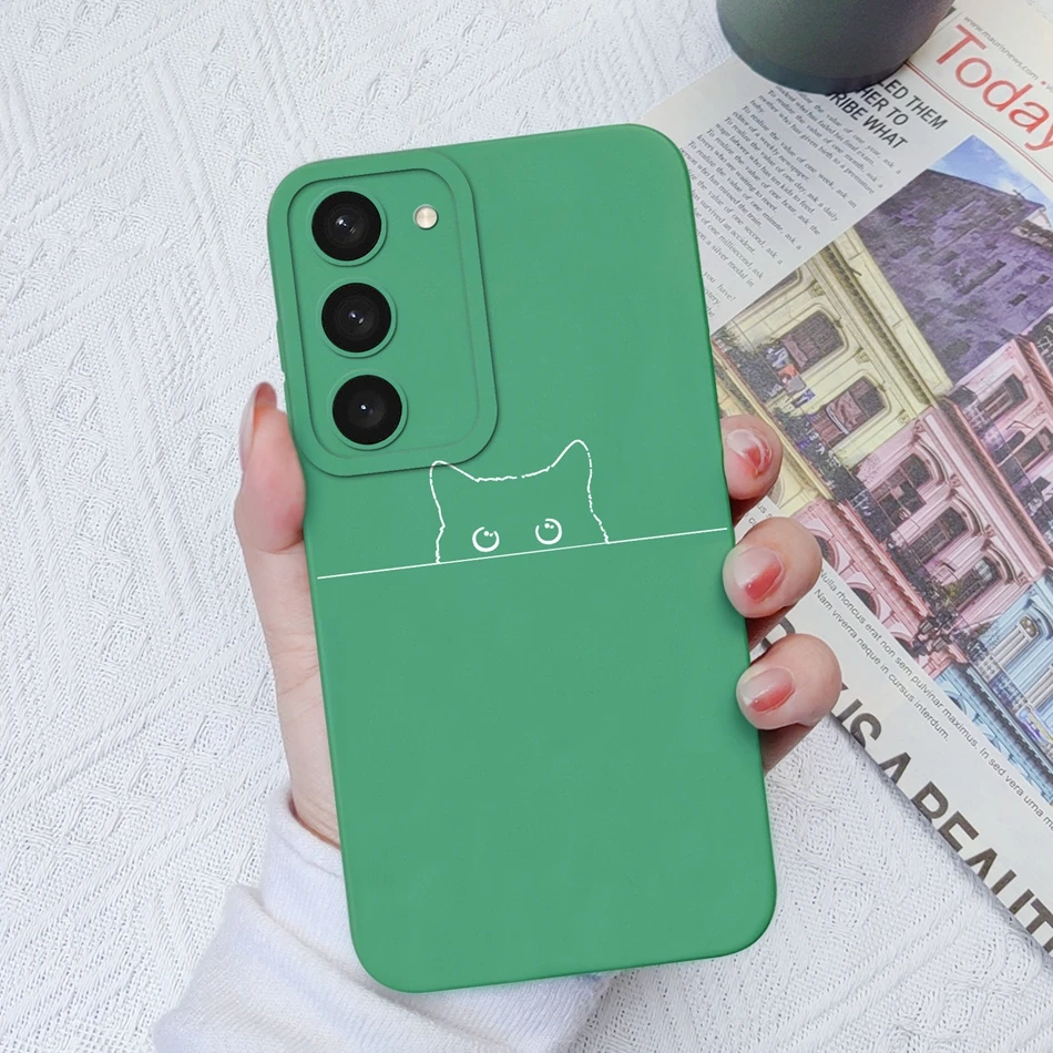 Comprar Funda de teléfono con dibujos animados a prueba de golpes para Samsung Galaxy S23 Ultra Plus FE, protección de cámara de silicona líquida, cubierta negra, Fundas de parachoques