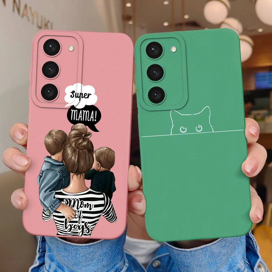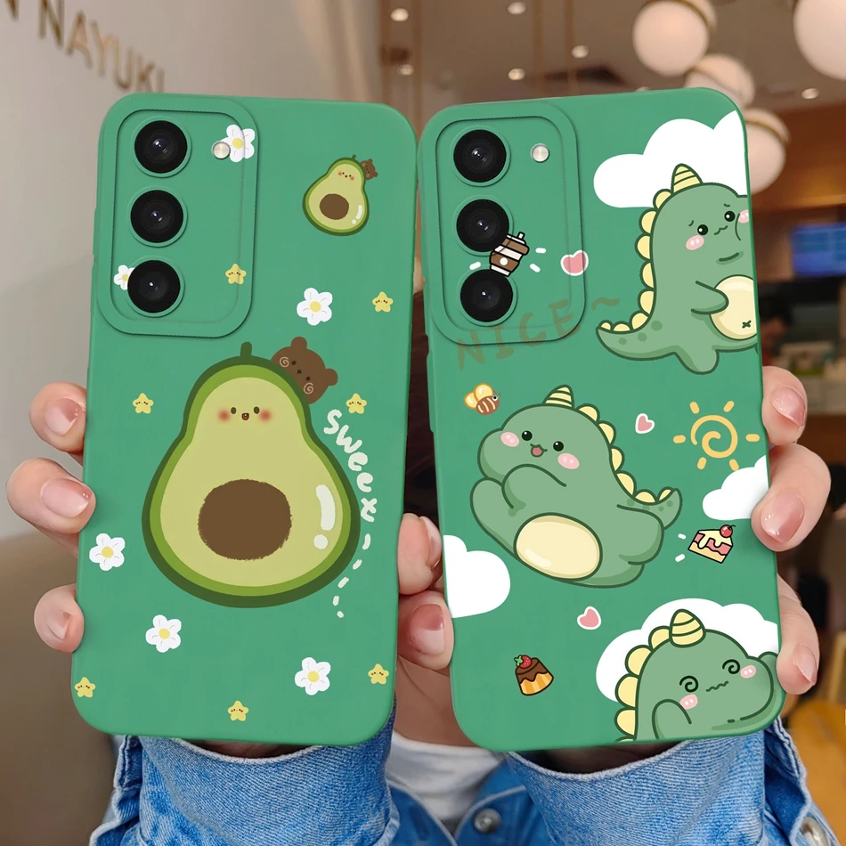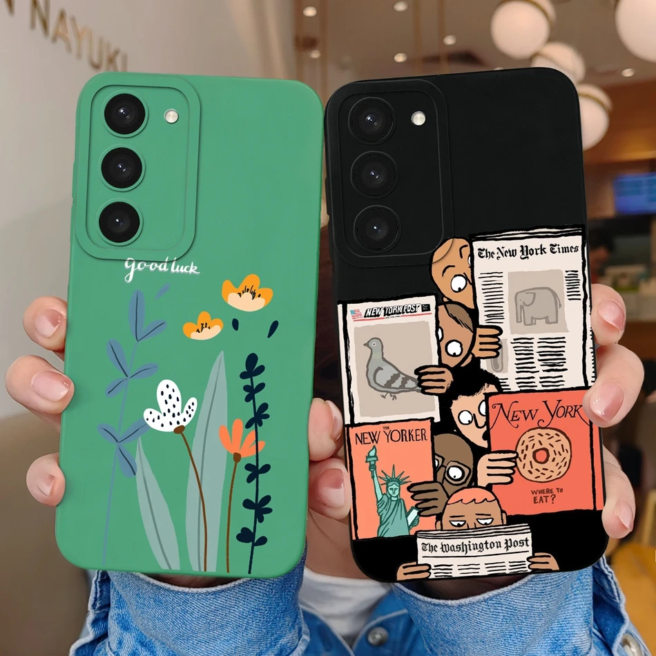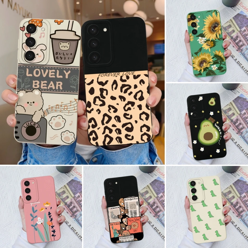 Comprar Funda de teléfono con dibujos animados a prueba de golpes para Samsung Galaxy S23 Ultra Plus FE, protección de cámara de silicona líquida, cubierta negra, Fundas de parachoques