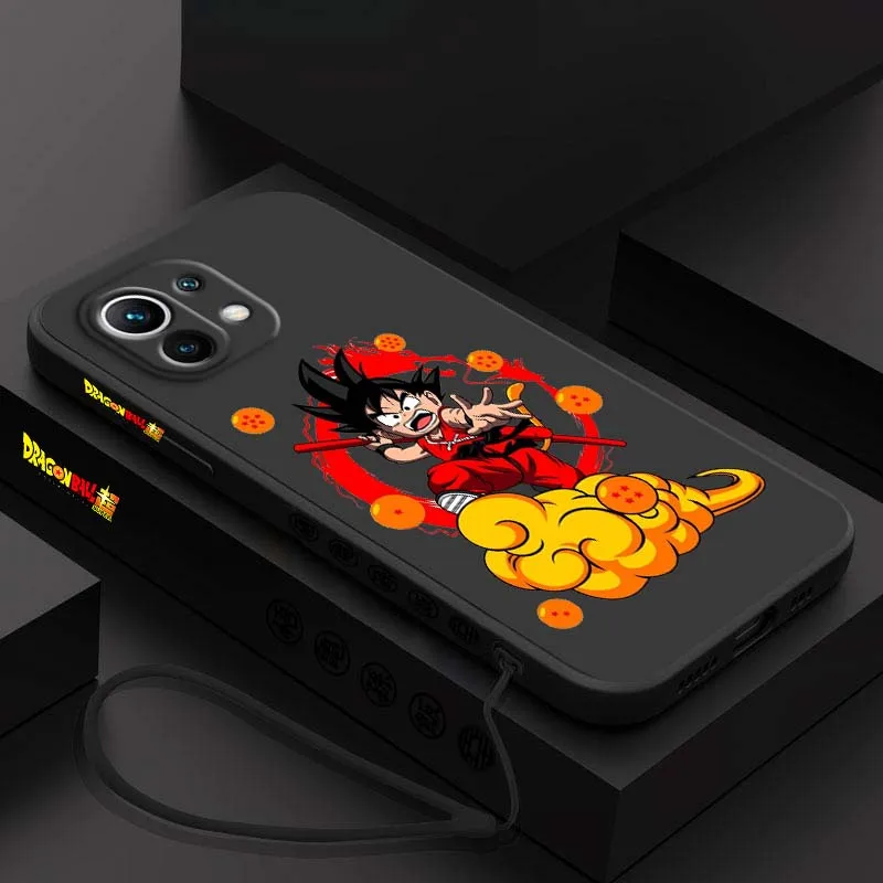 Comprar Funda de teléfono con dibujos animados d-dragon Balls Goku para Xiaomi Mi 17 15 14 13 12 11 9 13T 12T Lite Pro Max 5G, funda de teléfono con cuerda izquierda líquida