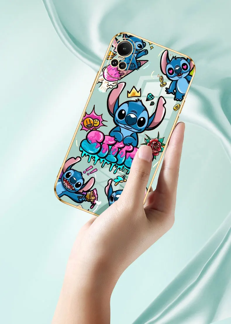 Comprar Funda de teléfono de dibujos animados de Disney Lilo Stitch para OPPO Reno 12 11 11F 10 8 8T 7 7Z 6 6Z 5 5F 4 4F Pro Plus Lite 5G cubierta chapada de lujo