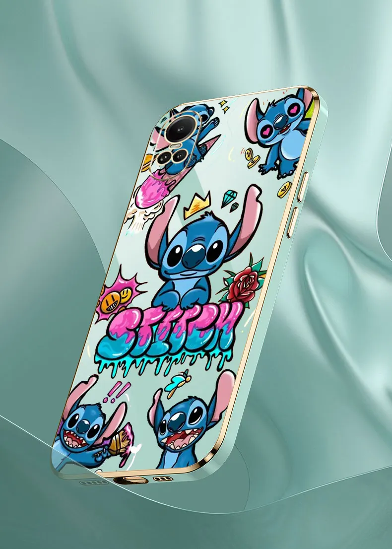 Dibujos animados Disney Lilo StitchFunda de teléfono para OPPO Reno 12 11F 10 8 8T 7 7Z 6 6Z 5 5F 4 4F Pro Plus Lite 4G 5G funda chapada de borde dorado de lujo