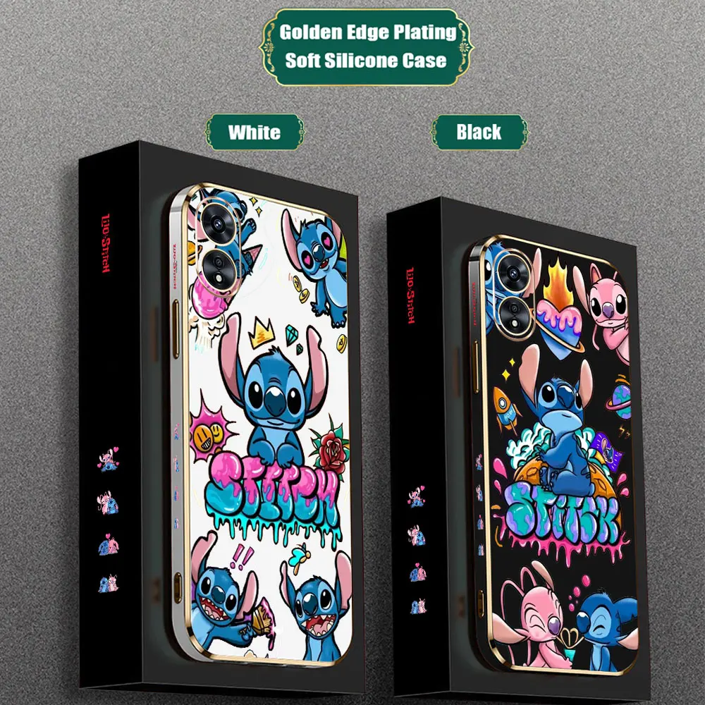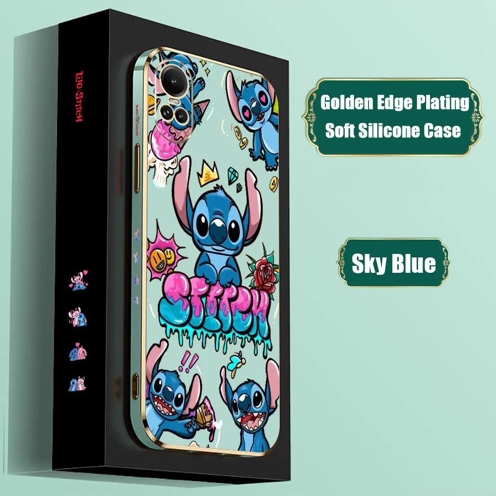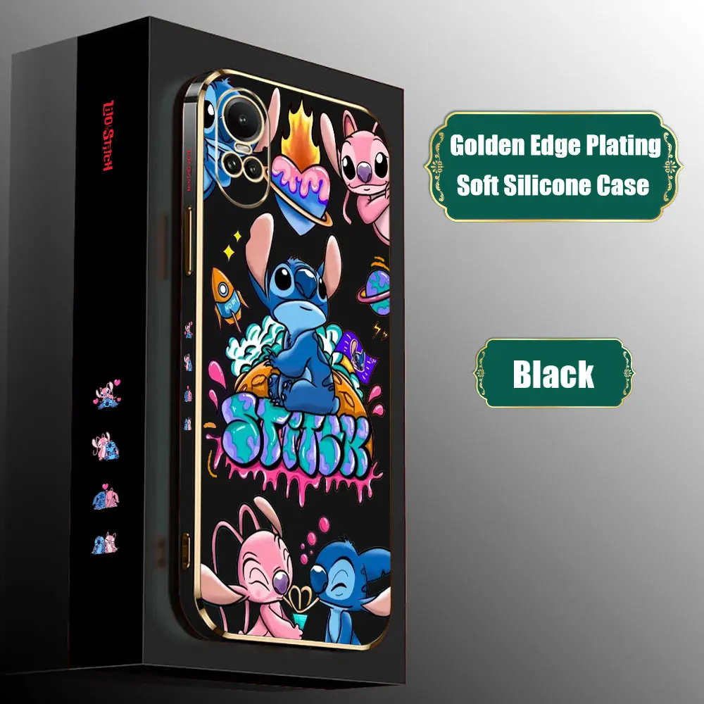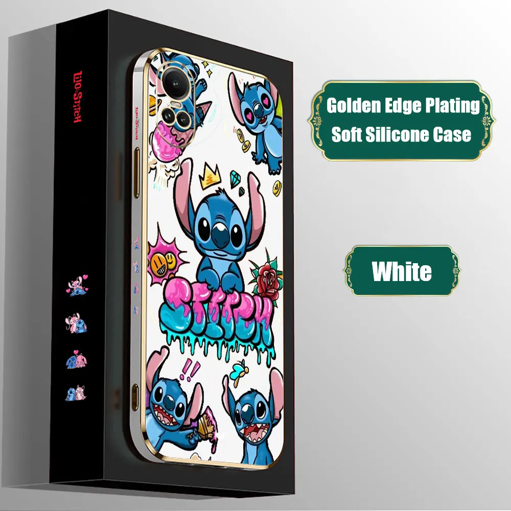 Dibujos animados Disney Lilo StitchFunda de teléfono para OPPO Reno 12 11F 10 8 8T 7 7Z 6 6Z 5 5F 4 4F Pro Plus Lite 4G 5G funda chapada de borde dorado de lujo