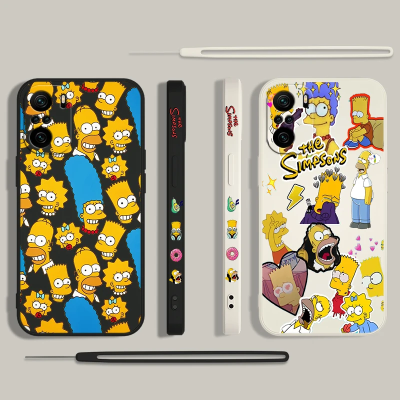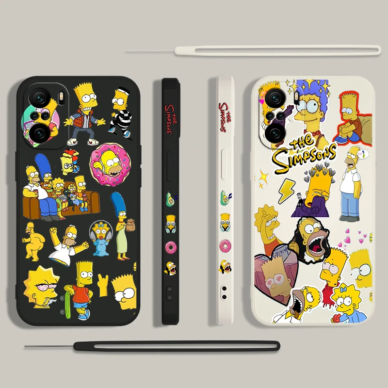 Comprar Funda de teléfono de dibujos animados divertidos de Los Simpsons para Xiaomi Redmi Note 13, 12, 12Pro, 11, 11S, 11T, 10S, 10 Pro Plus, cuerda líquida izquierda 5G