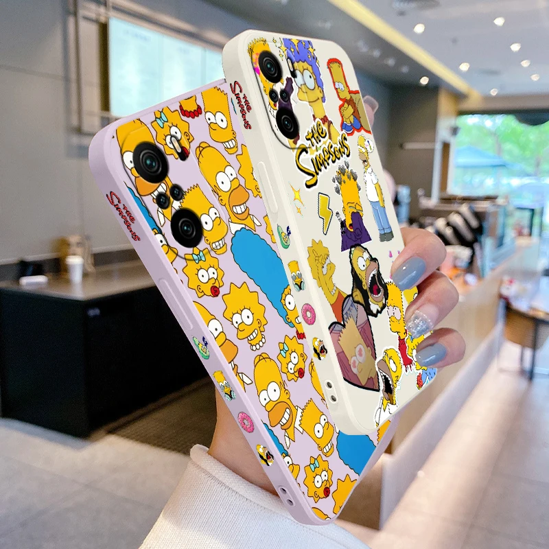 Funda de teléfono de dibujos animados divertidos de Los Simpsons para Xiaomi Redmi Note 13, 12, 12Pro, 11, 11S, 11T, 10S, 10 Pro Plus, cuerda líquida izquierda 5G