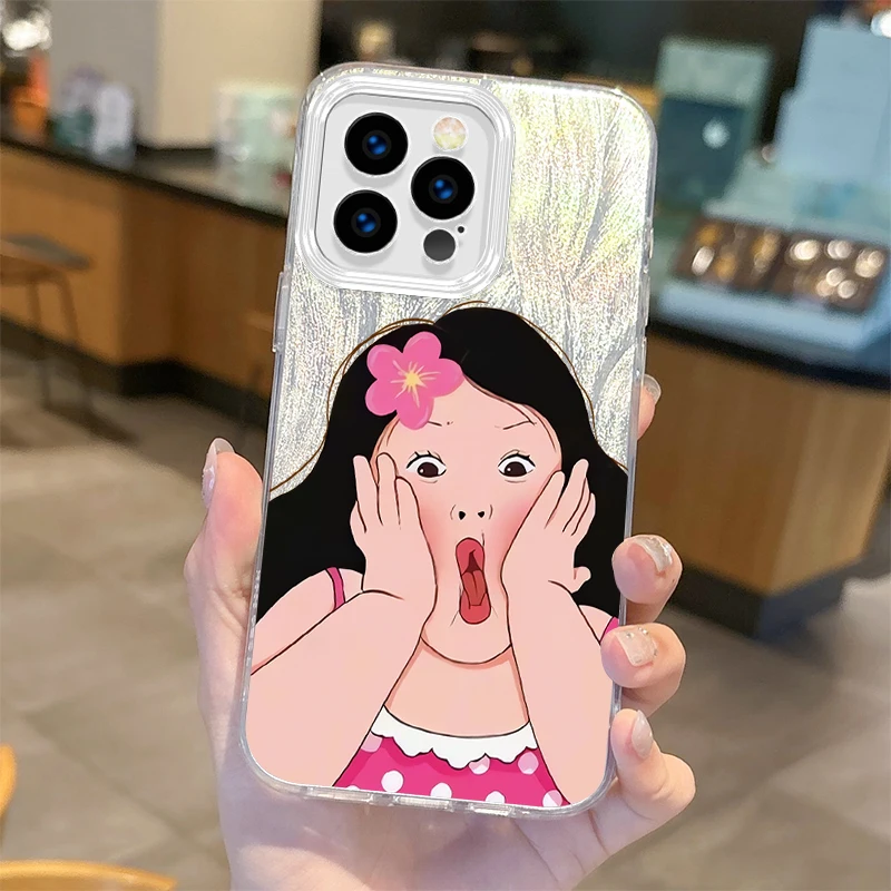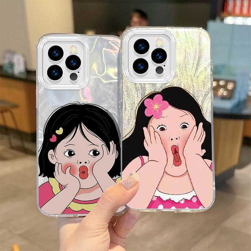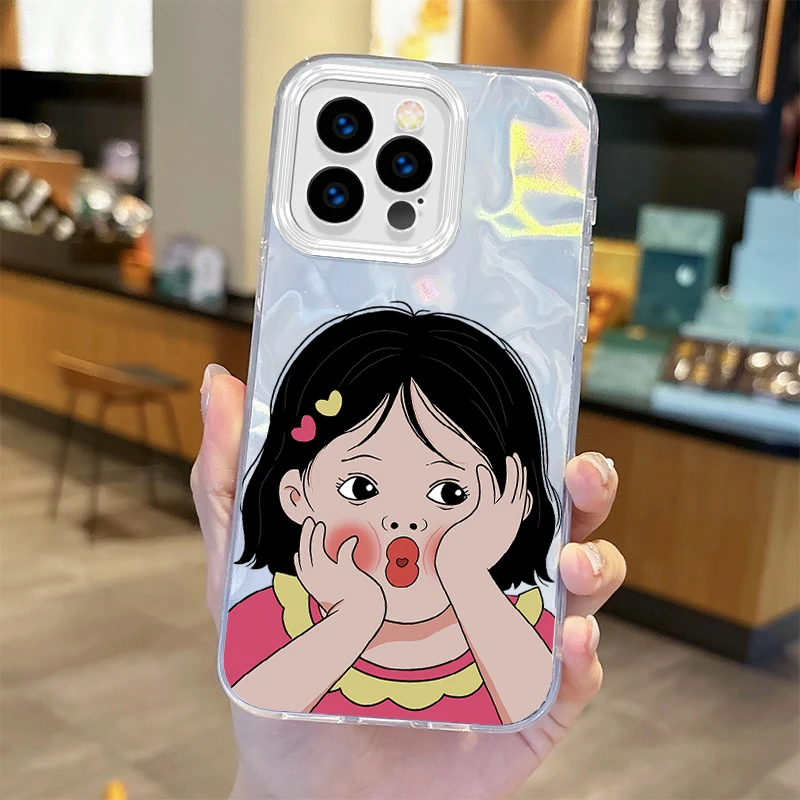 Funda de teléfono de dibujos animados de chica bonita con personalidad divertida para iPhone16 15 14 13 12 11 8 7 6 Pro Max Plus XS XR, funda trasera degradada a prueba de golpes