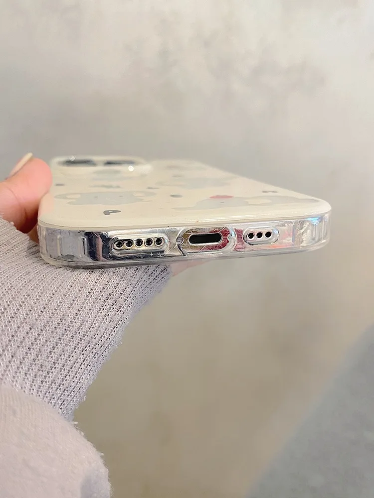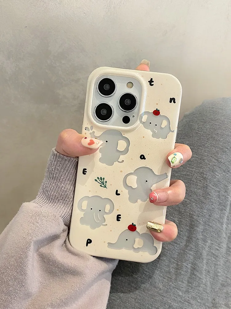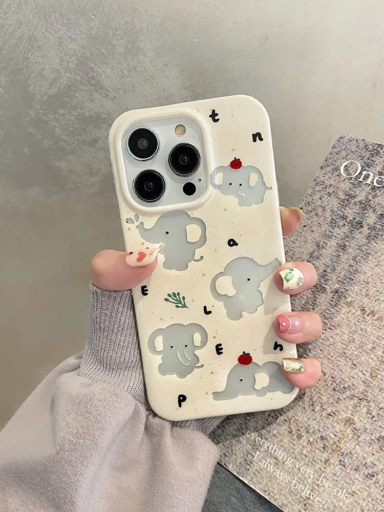 Cartoon Cute Hollow Out Elephant IMD Phone Case For iPhone 15 Pro Max 14 13 11 12 Shockproof Silicone Back Cover