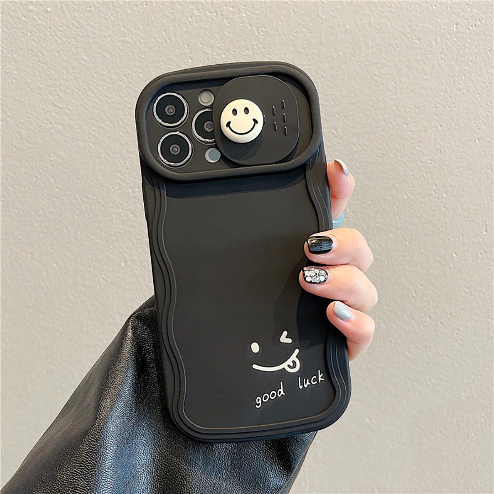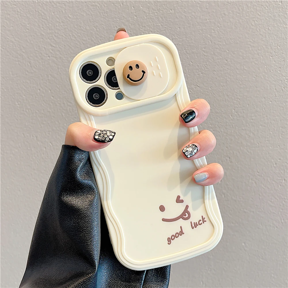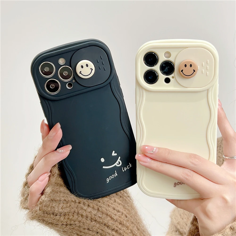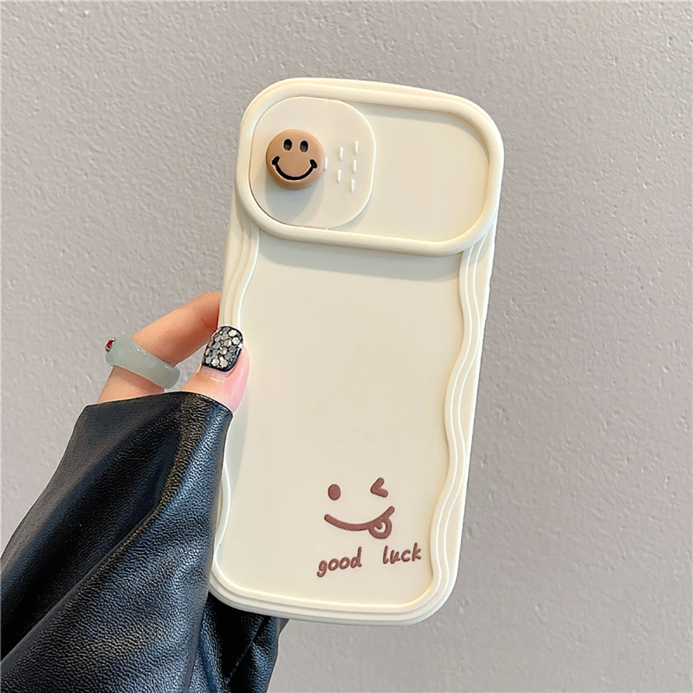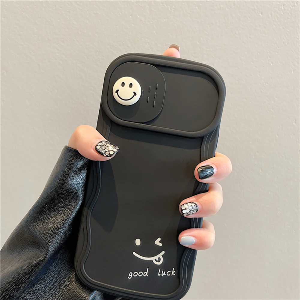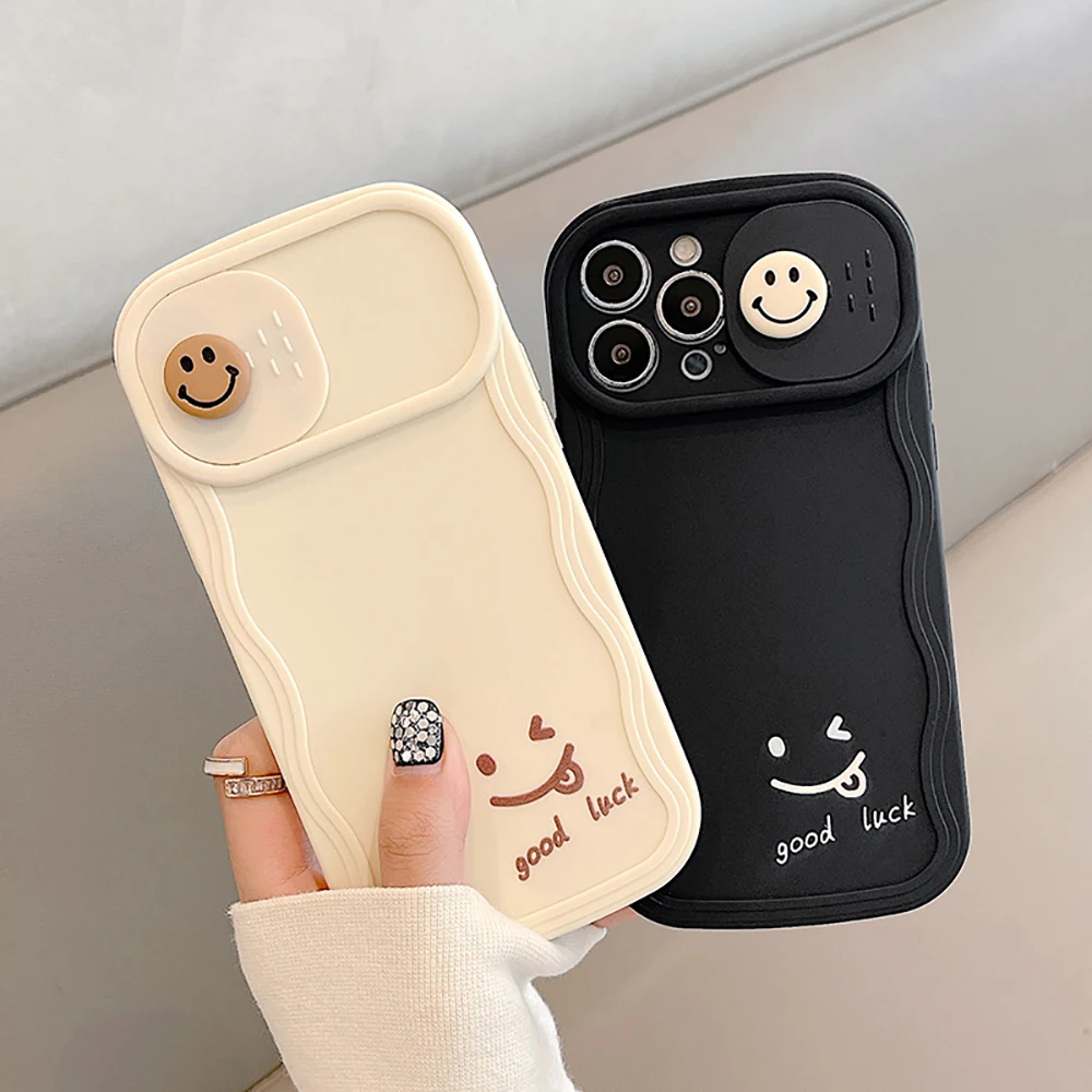 3D Cute Smile Camera Protect Cartoon Phone Case For iPhone 13 11 12 14 Pro Max Fashion Shockproof Lovely Soft Back Cover Case