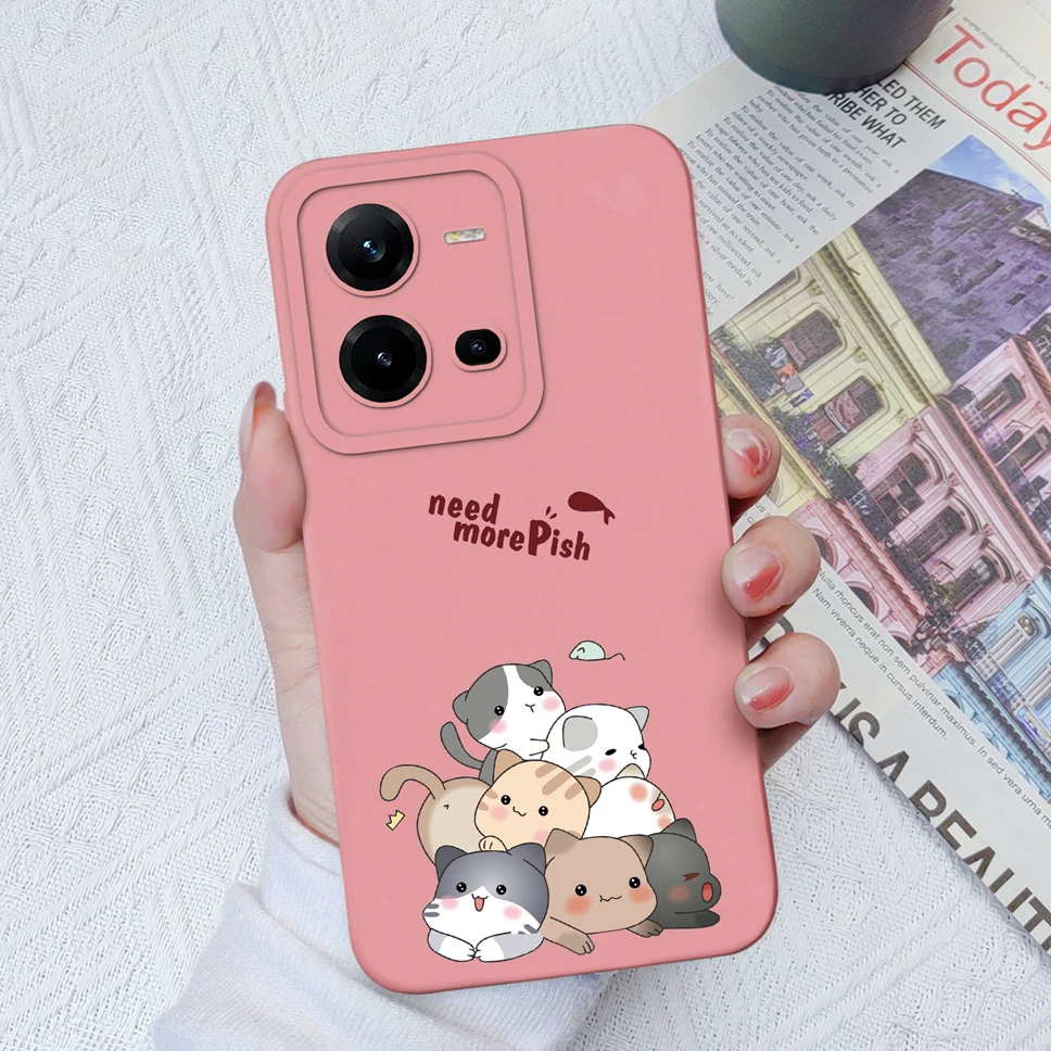 Funda de teléfono con dibujos animados para Vivo V25 V25E 4G 5G, carcasa protectora suave de silicona líquida, bonita