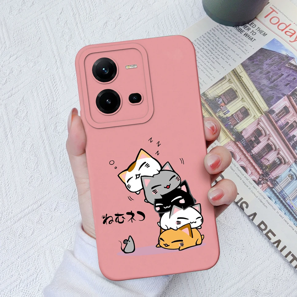 Funda de teléfono con dibujos animados para Vivo V25 V25E 4G 5G, carcasa protectora suave de silicona líquida, bonita - imagen 3