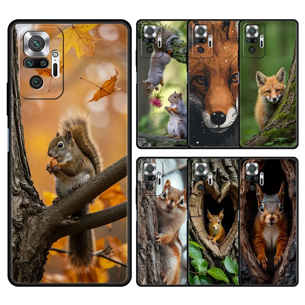 Funda de teléfono con dibujos de animales, oso, zorro, ardilla, para Xiaomi Redmi Note 14, 13, 12, 5G, 11, 10 Pro Plus, 4G, 9S, 14C, 13C, 12C, 10C, 9C, 9A