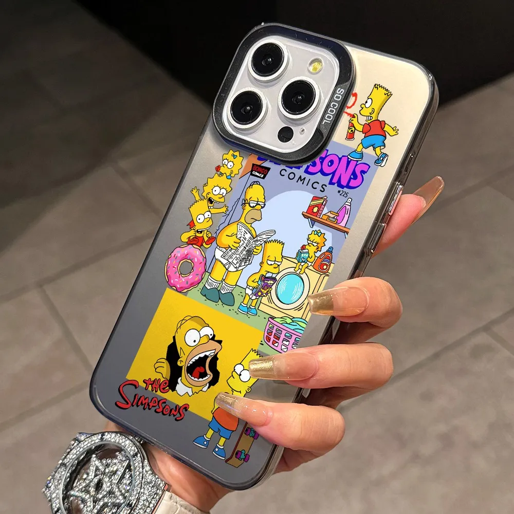 Comprar Funda de teléfono con dibujos divertidos de Simpsons para Xiaomi Mi 14 13 12 T 11 Lite Poco X6 X5 NFC F6 F5 F4 M3 Pro 4G 5G, funda dura plateada mate