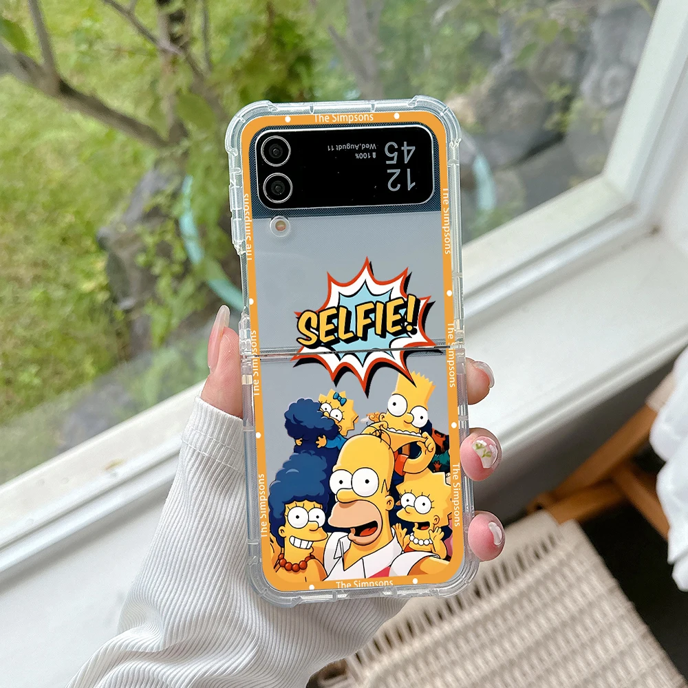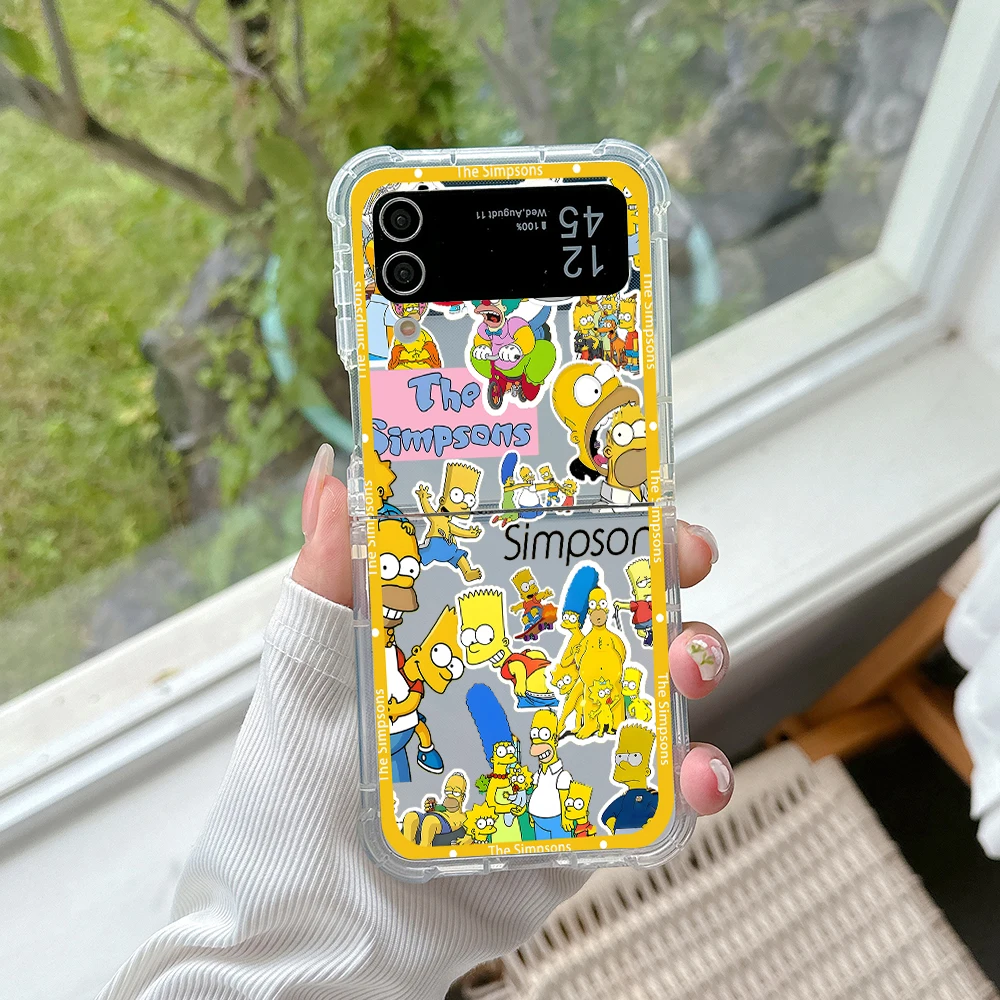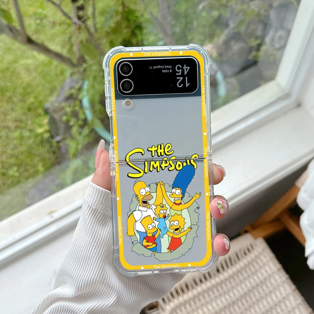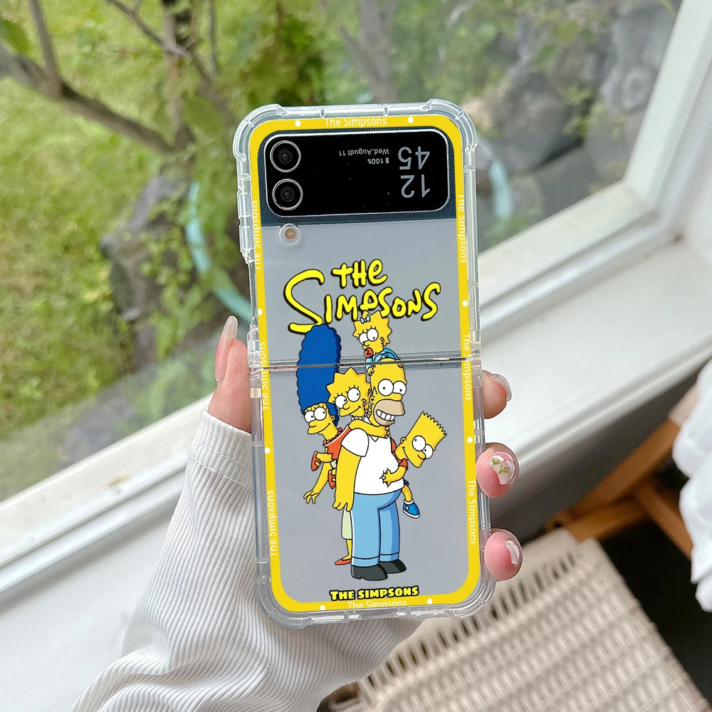 Funda de teléfono con dibujos de Los Simpsons para Samsung, carcasa trasera transparente anticaída para Galaxy Z Flip 3 4 Z Flip 5 6 Z Fold 4 5G PC