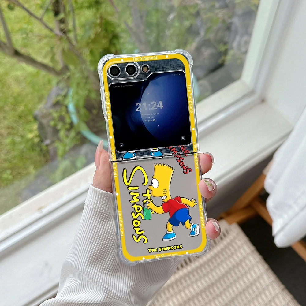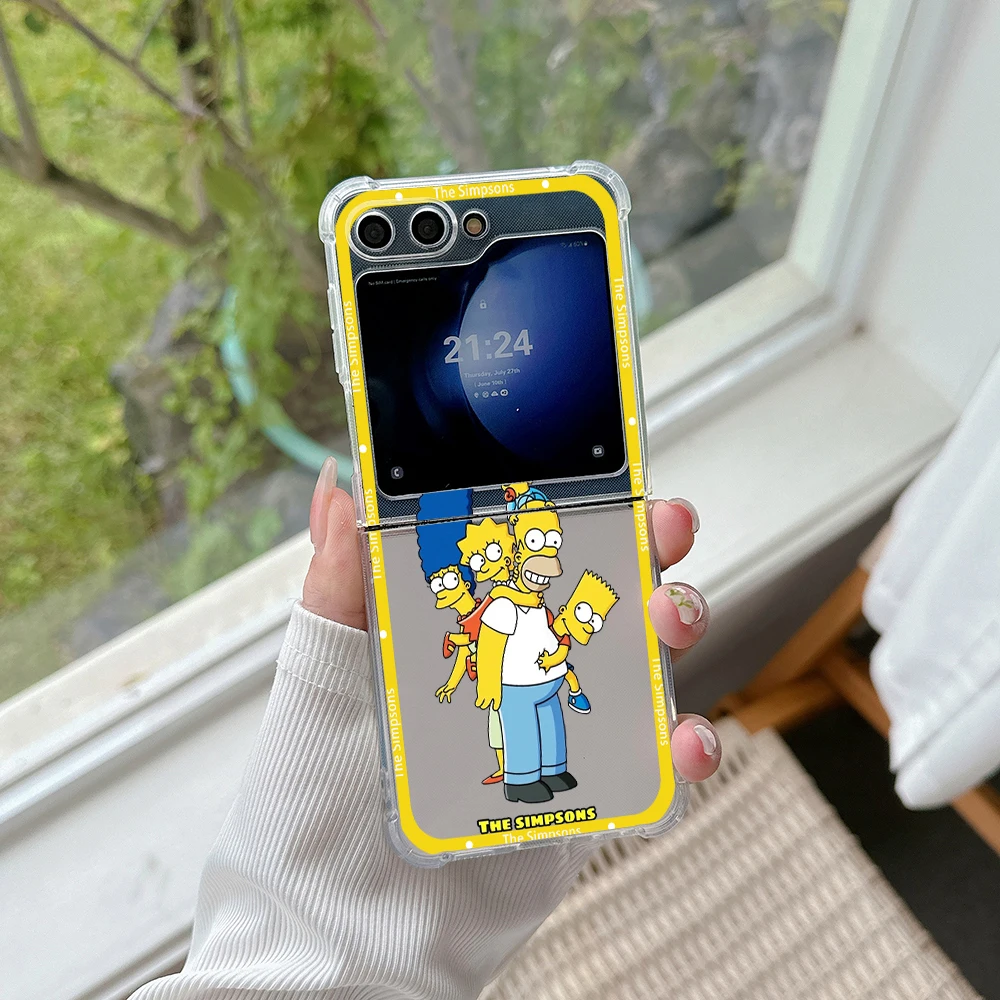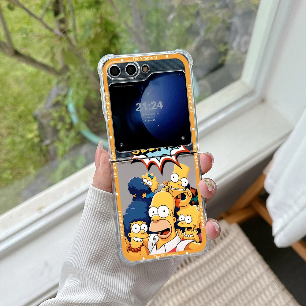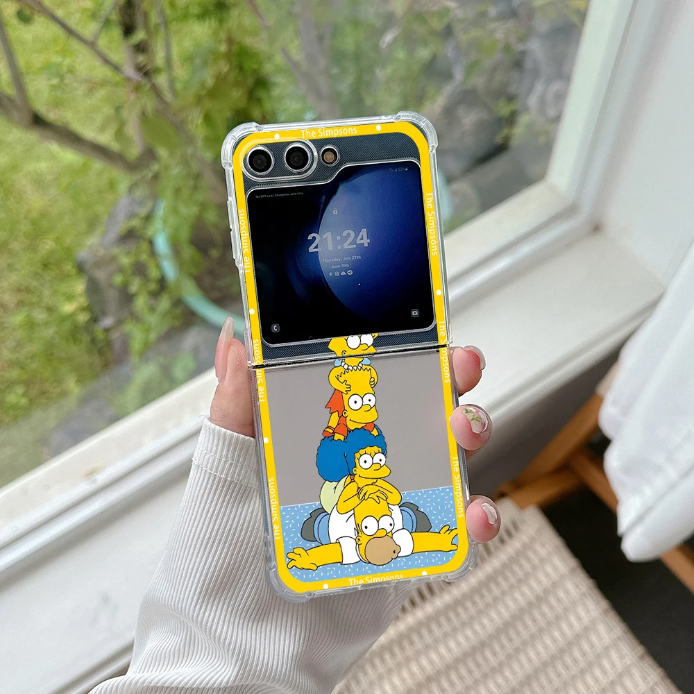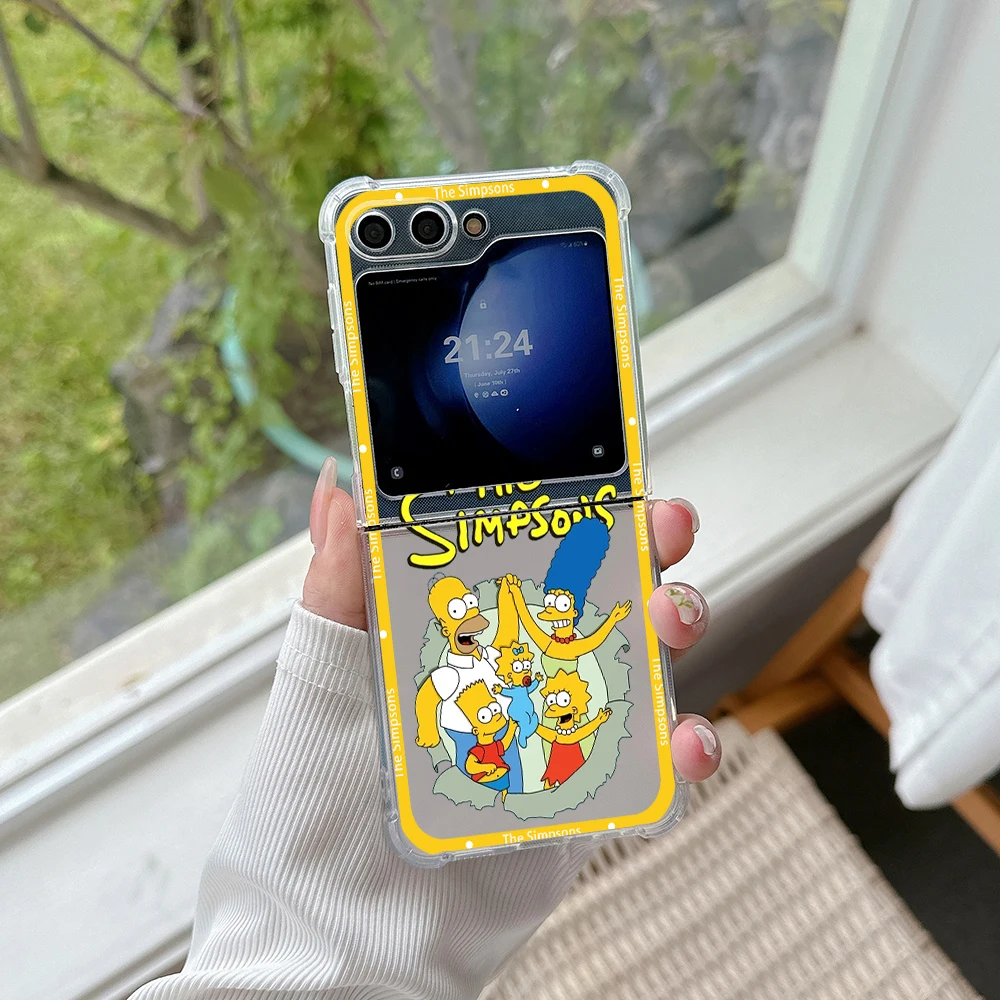 Funda de teléfono con dibujos de Los Simpsons para Samsung, carcasa trasera transparente anticaída para Galaxy Z Flip 3 4 Z Flip 5 6 Z Fold 4 5G PC