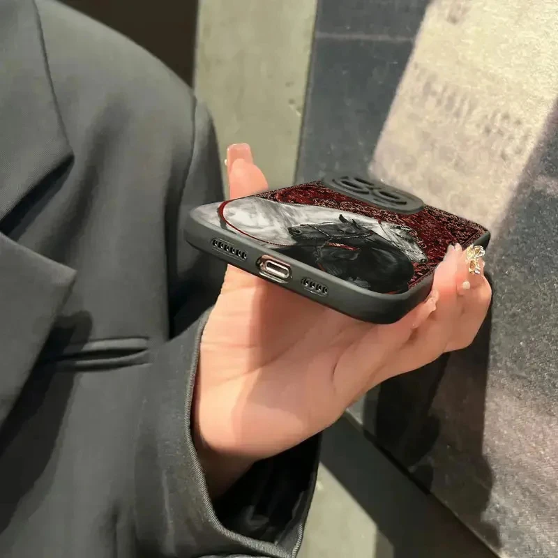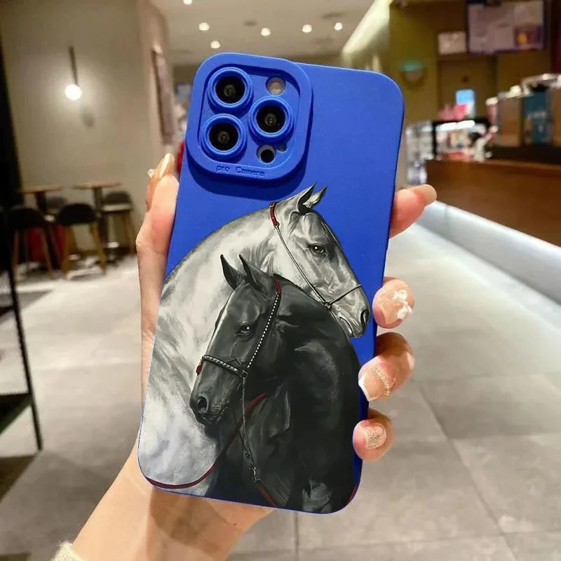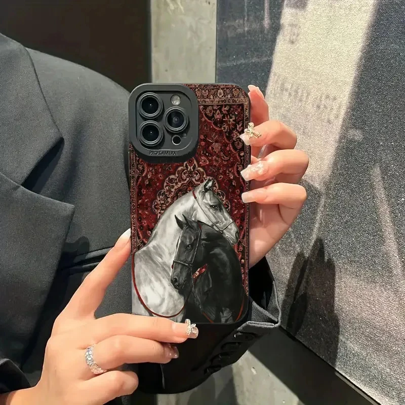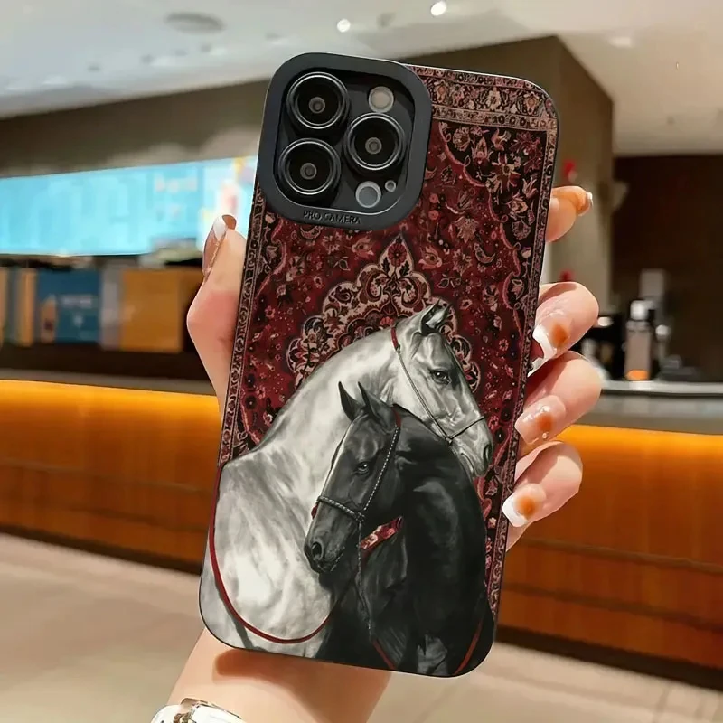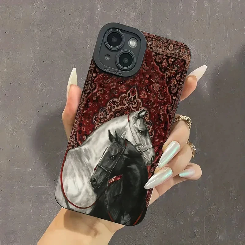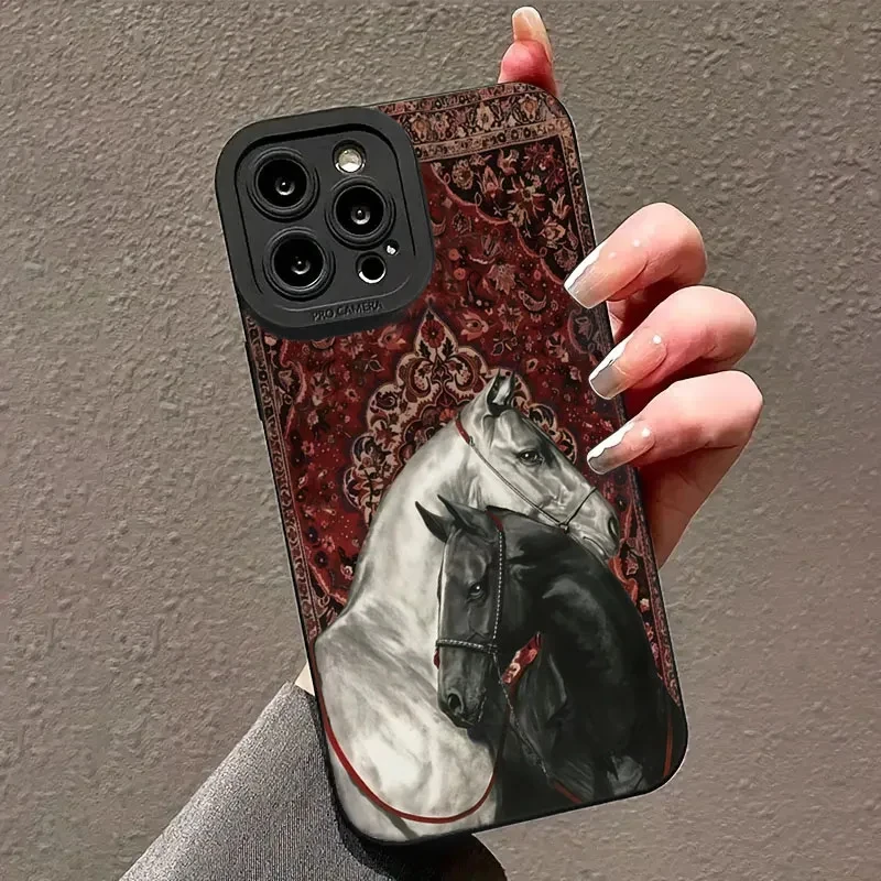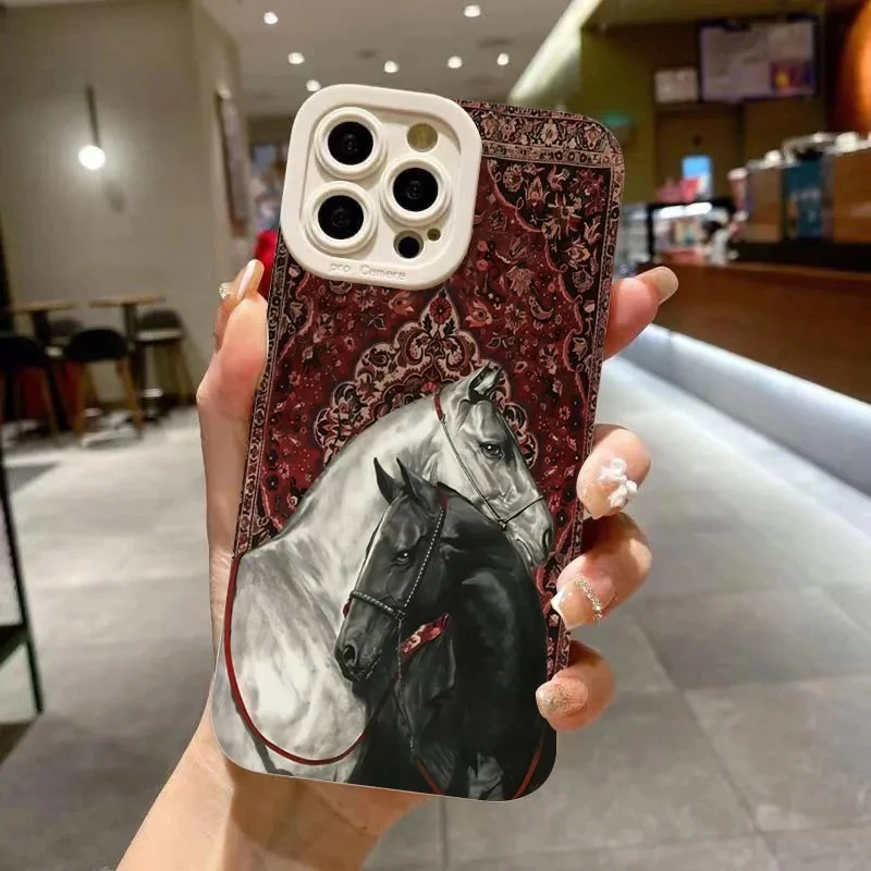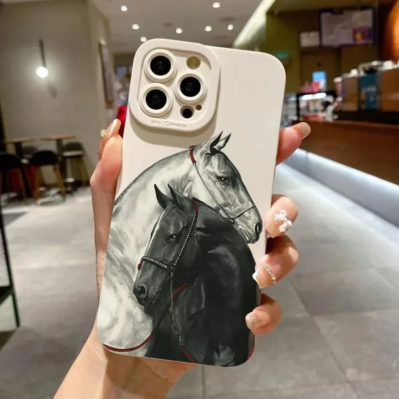 Comprar Funda de teléfono con diseño de caballo blanco y negro Vintage para iPhone 17 16 15 14 13 12 11 Pro Max X XR XS Max 7 8 Plus 17 Air contraportada