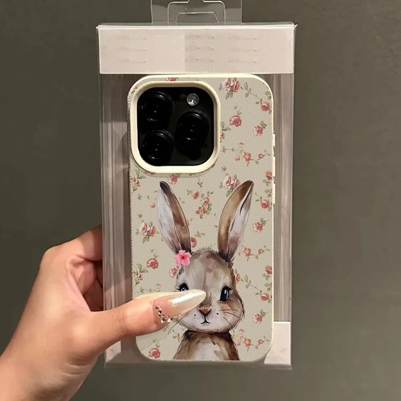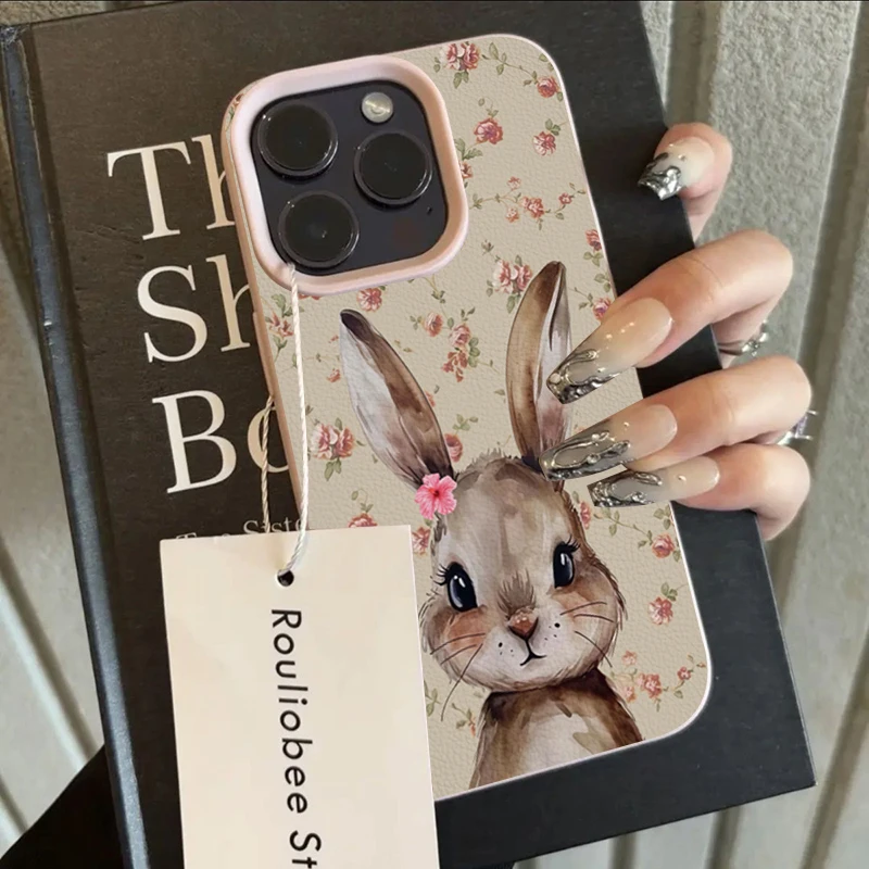 Funda de teléfono con patrón de conejo Floral Retro para Samsung Galaxy S25 S24 FE S23 Ultra S22 Plus A16 A15 A26 A36 A55 A54 A56 funda suave