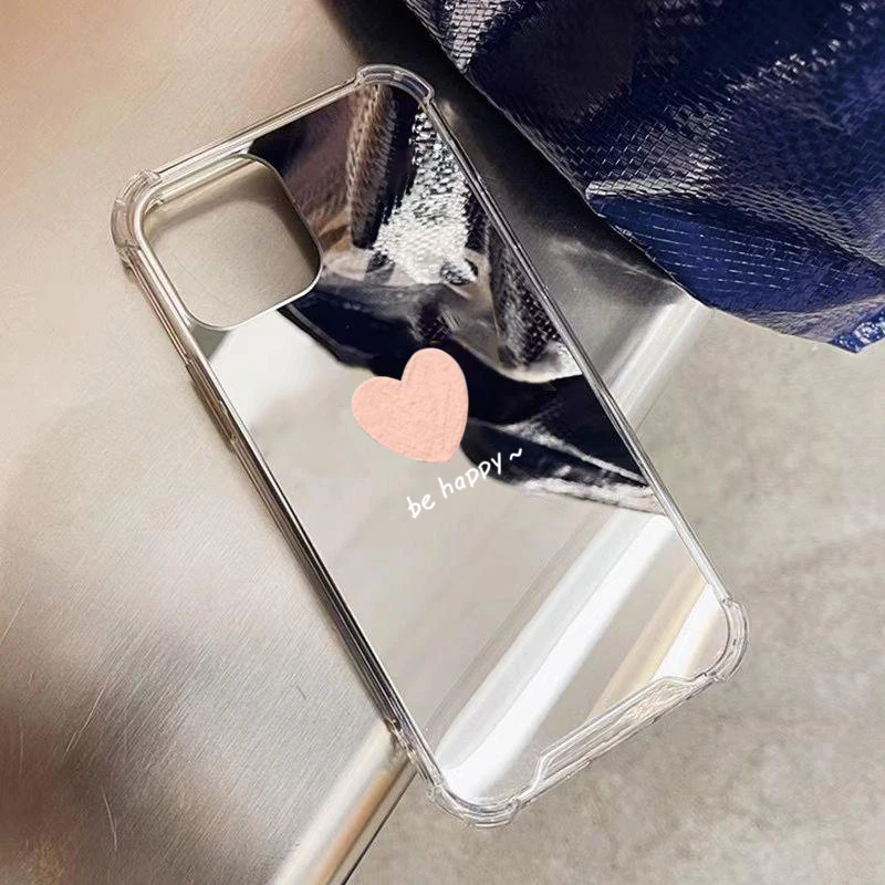Funda de teléfono con espejo y patrón de corazón de amor Simple para iPhone 11 12 13 14 15 16 Pro Max XS X XR 7 8 Plus SE funda suave con espejo de maquillaje