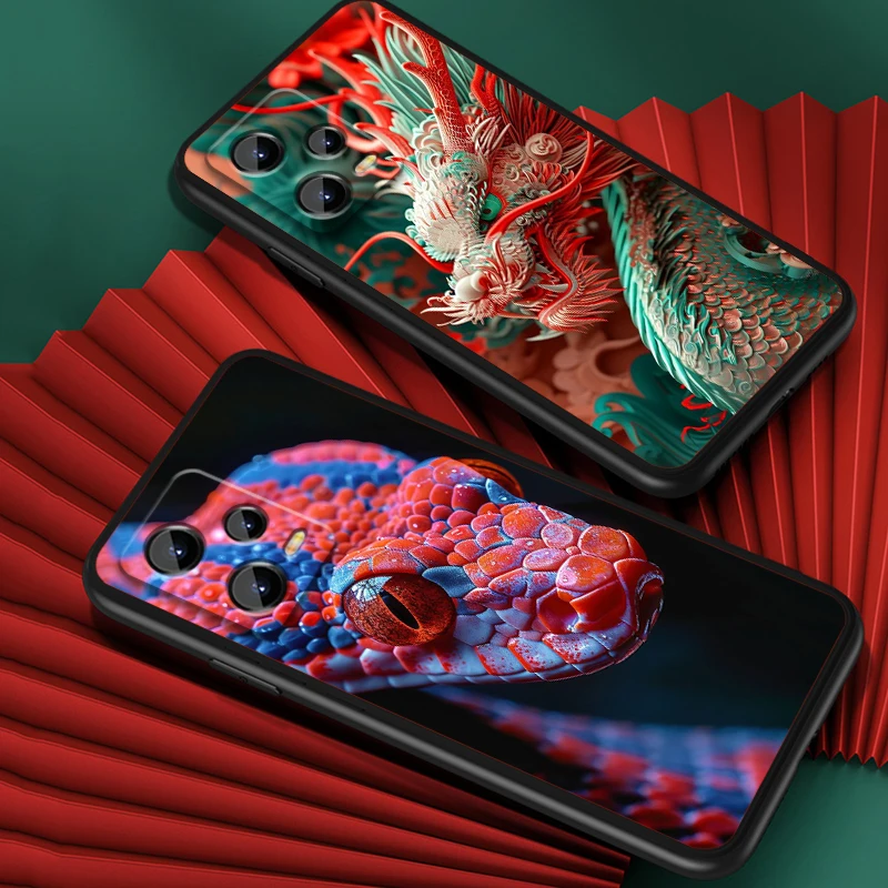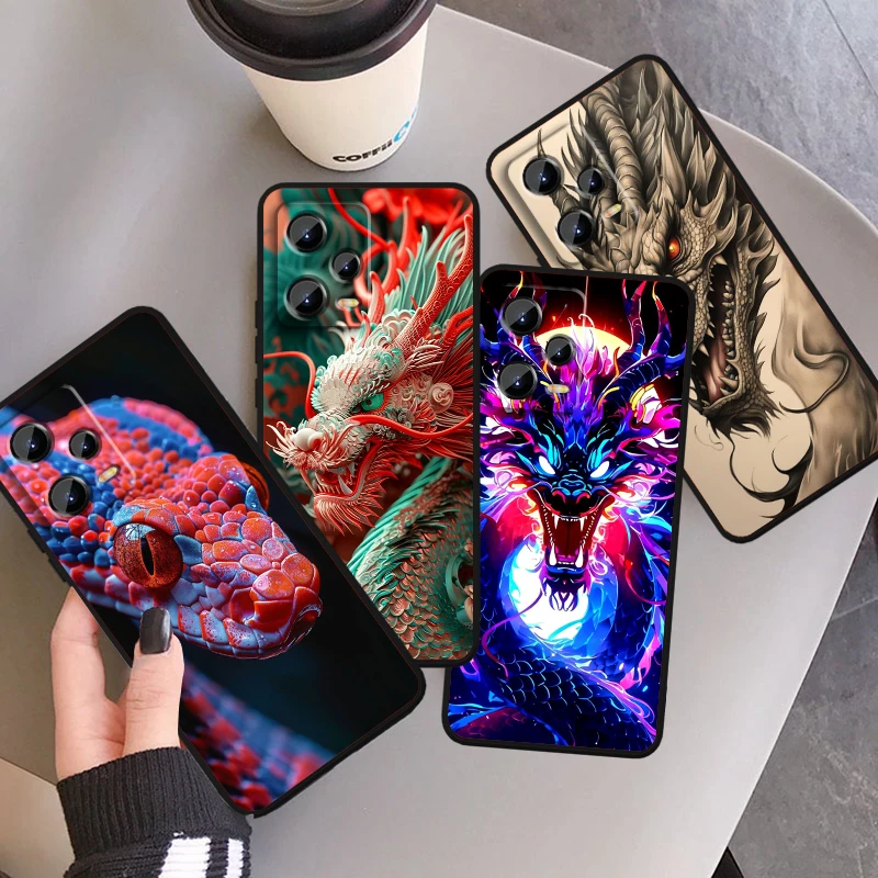 Comprar Funda de teléfono con diseño de dragón de serpiente para Xiaomi Redmi Note 13, 12R, 12, 12S, Turbo 11, 11T, 11S, 10, 10S Pro Plus, 5G, color negro