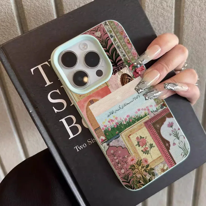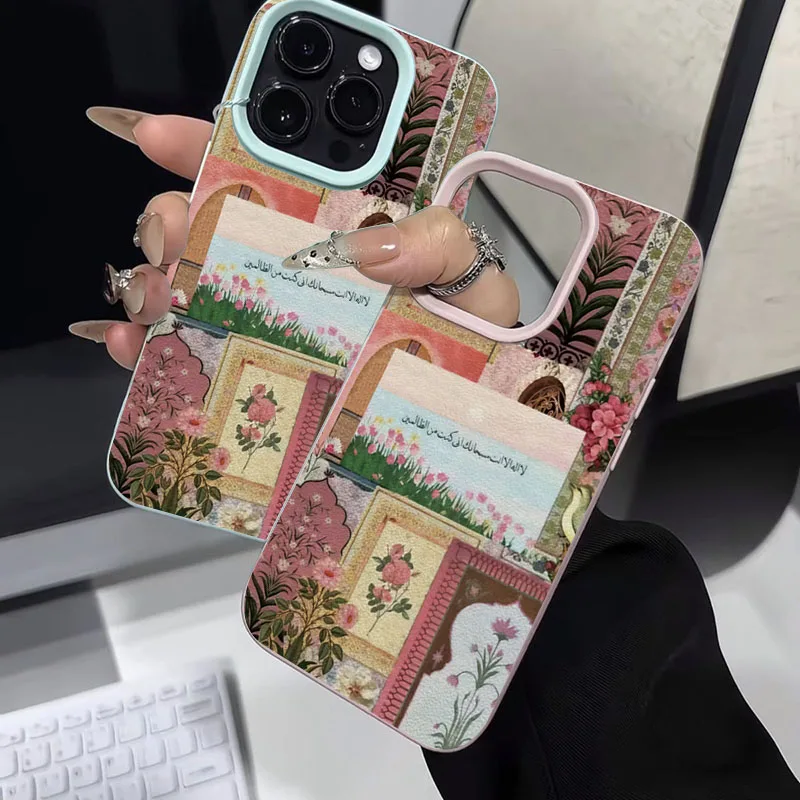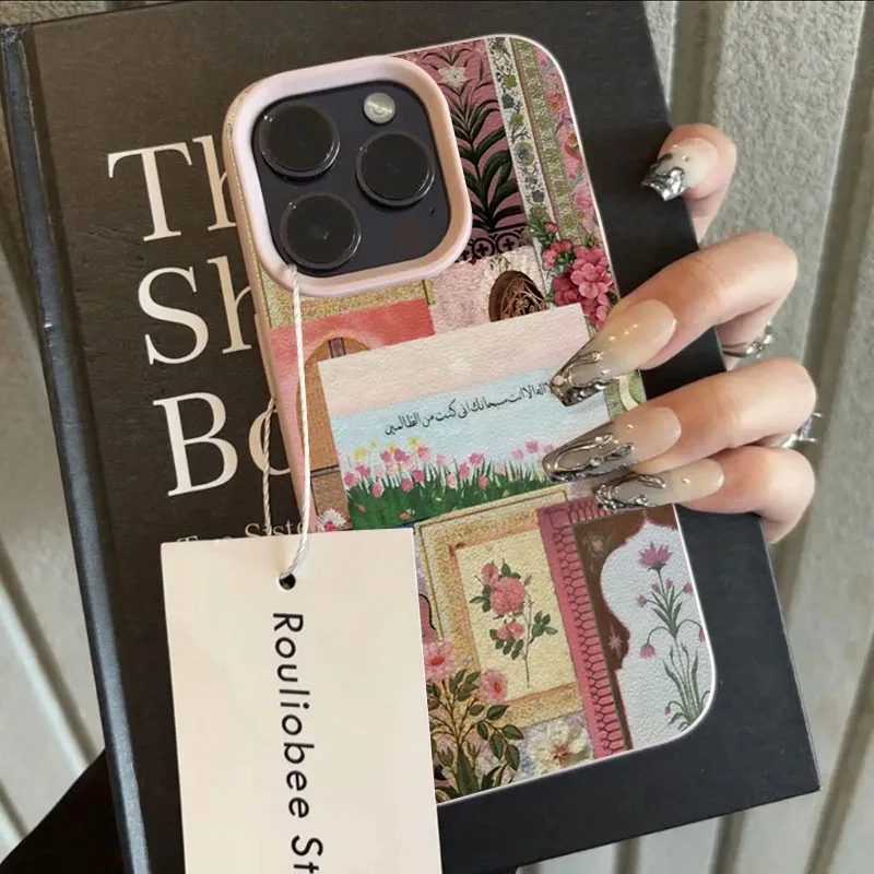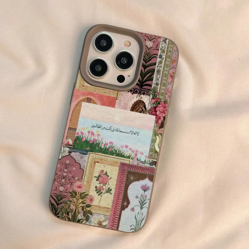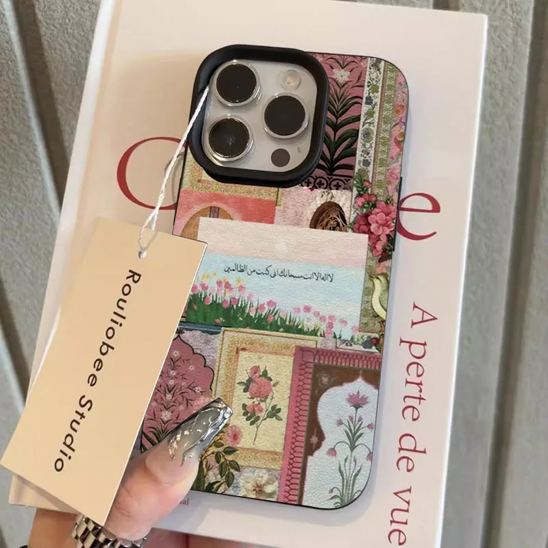 Funda de teléfono con diseño de escritura árabe de mar de tulipán de Oriente Medio rosa para iPhone 16 15 14 13 12 11 Pro Max 16E X XR XS Max 15 Plus