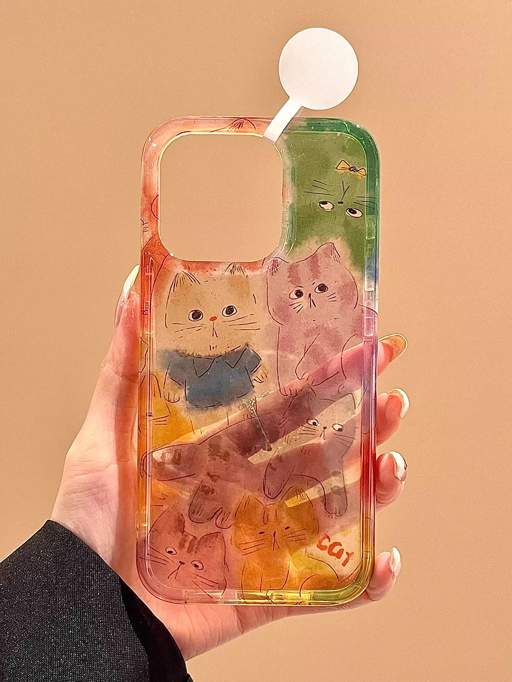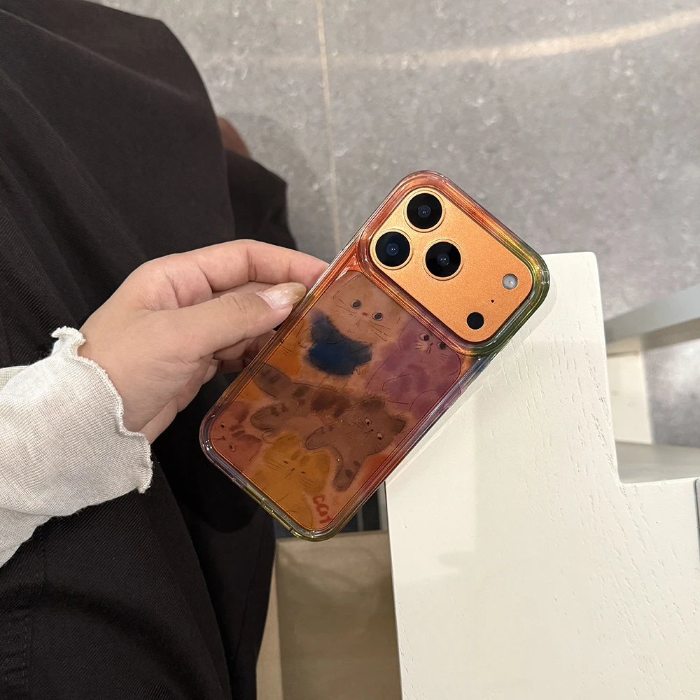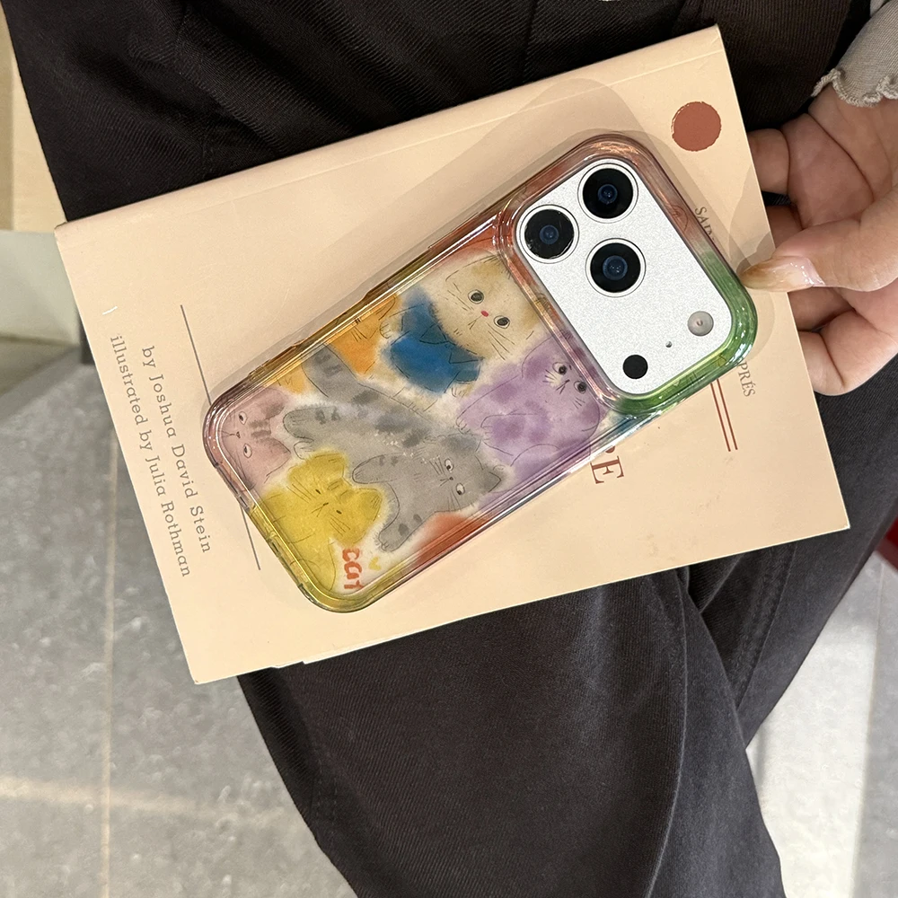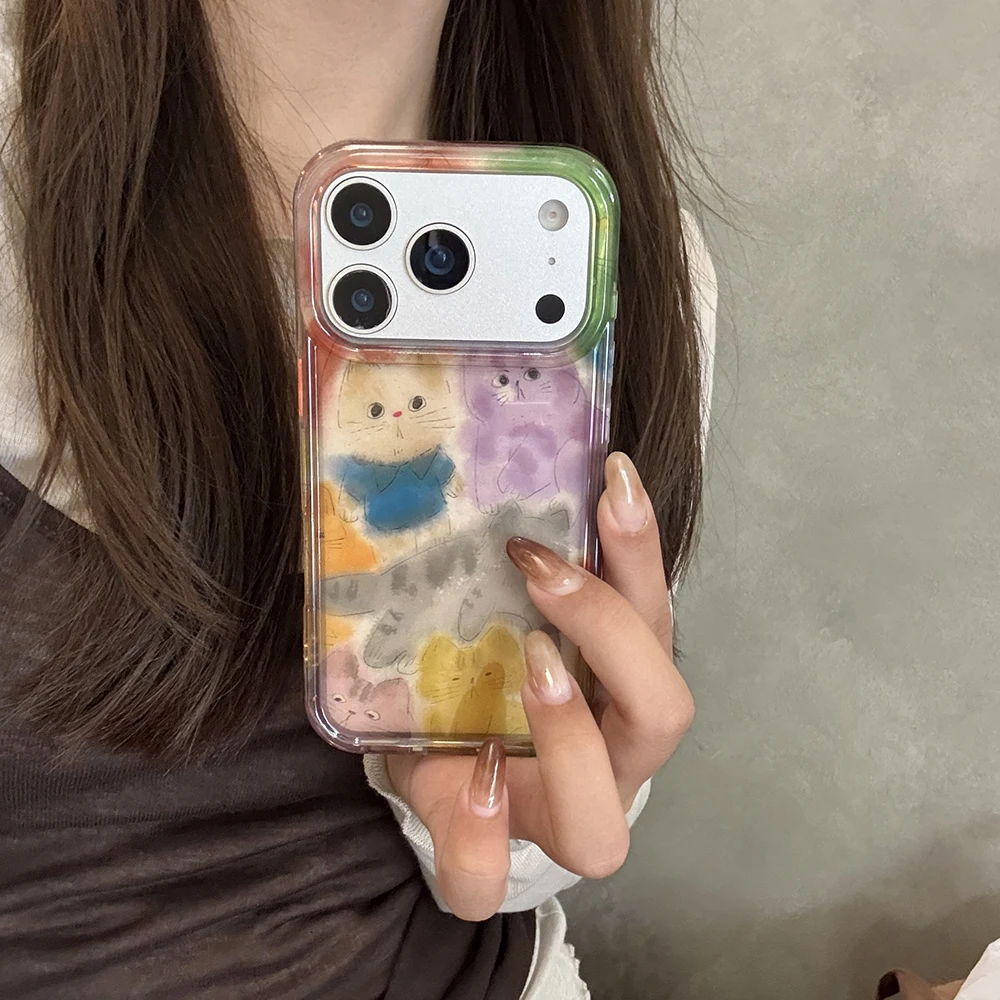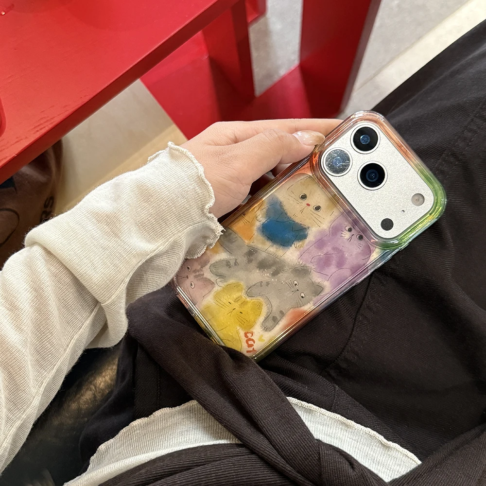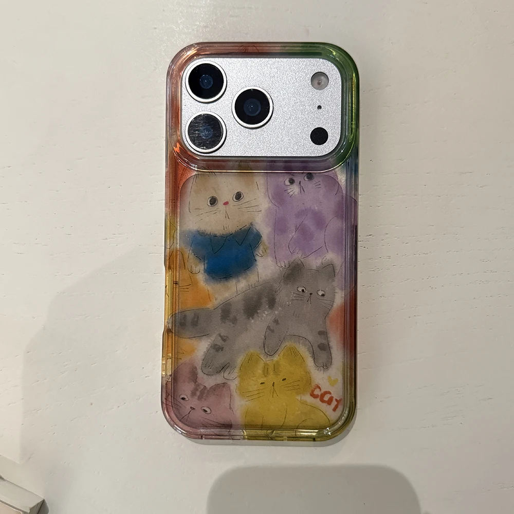 Funda de teléfono con gatito borroso y grafiti bonito coreano para IPhone 13 15 14 16 17 Pro Max, funda trasera transparente suave a prueba de golpes