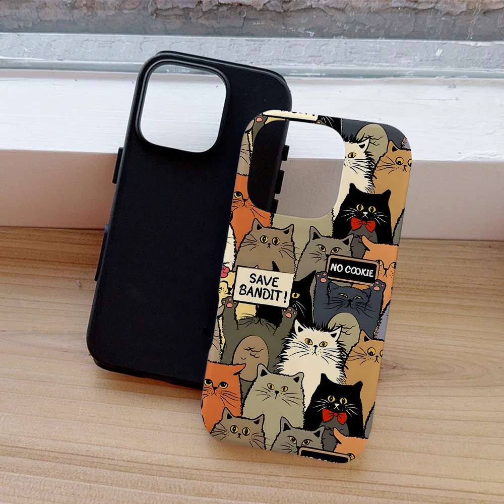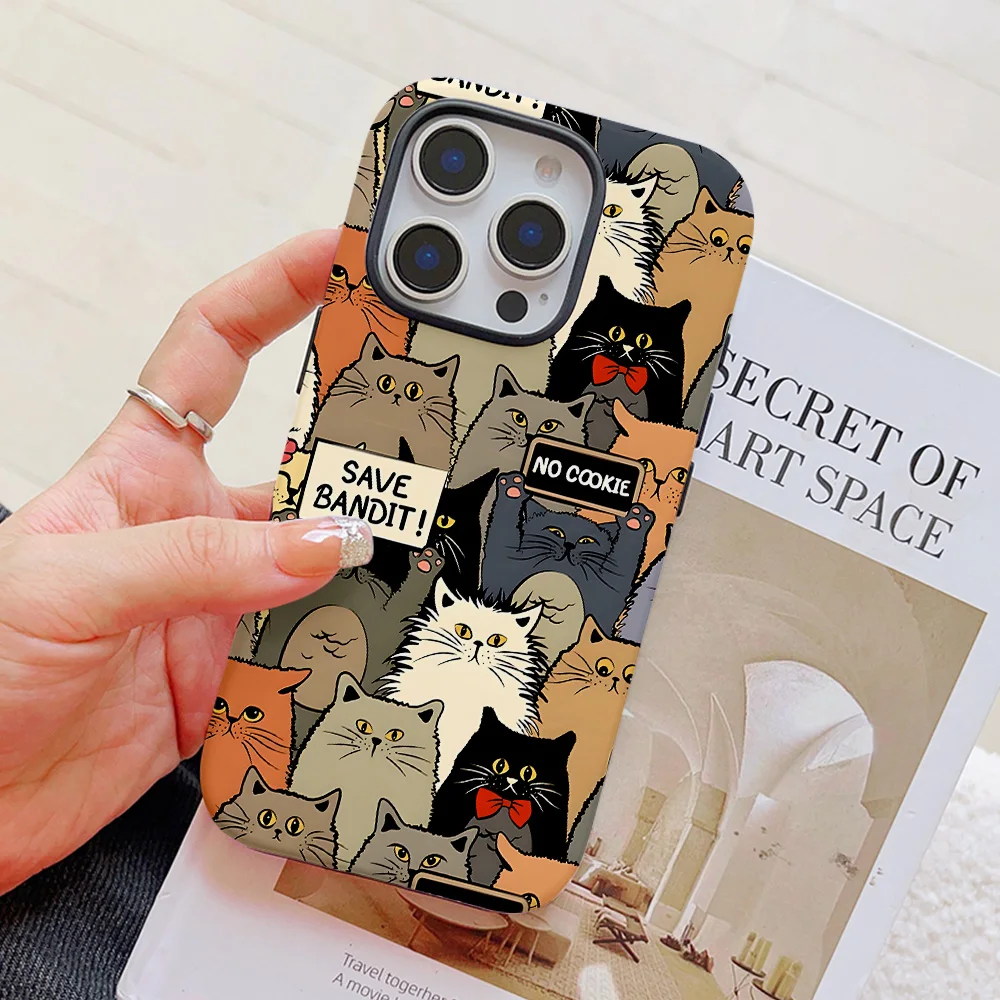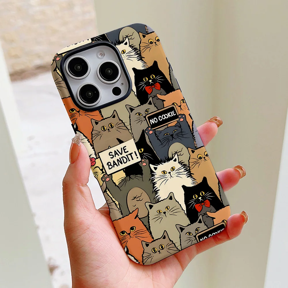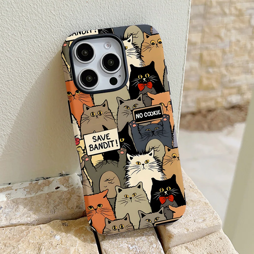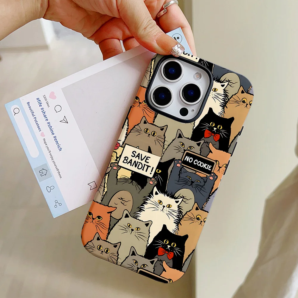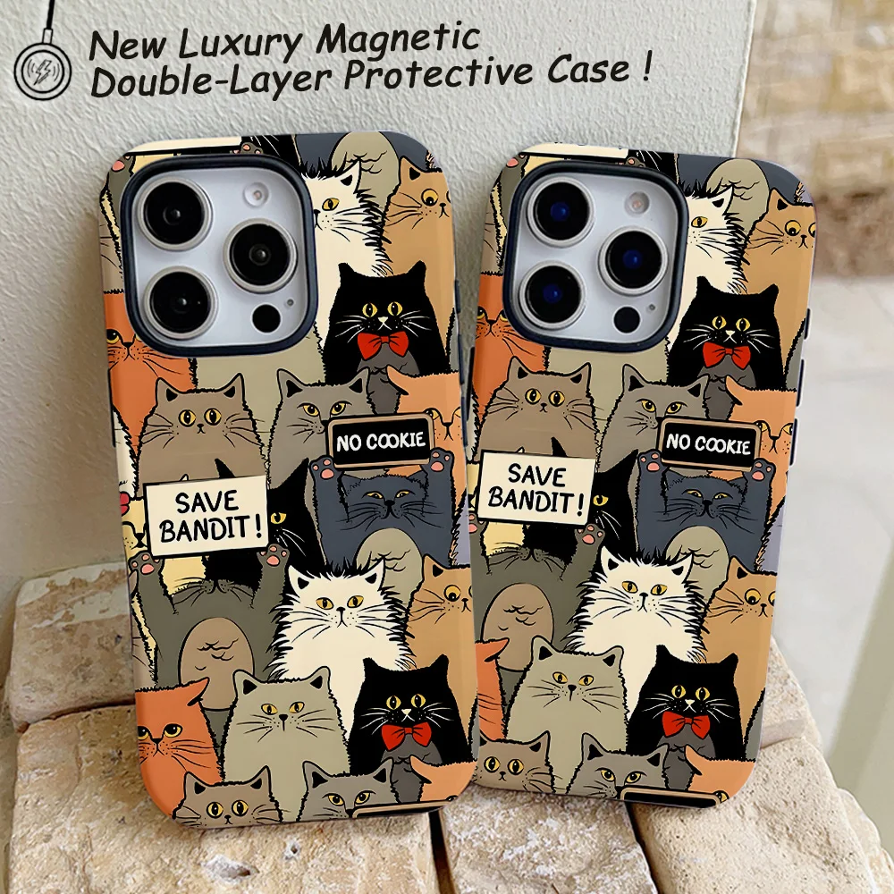 Funda de teléfono con diseño de gato apilable de dibujos animados para iPhone 16, 15, 14, 13, 12, 11 Pro Max Plus, funda trasera magnética de doble capa de lujo