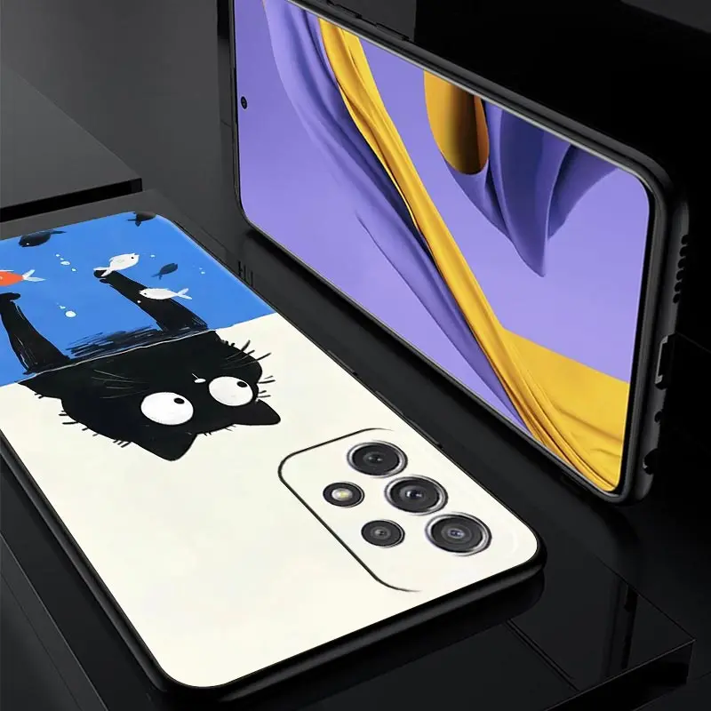 Funda de teléfono con diseño de gato para Samsung A51 A71 A21S A17 A11 A15 A25 A31 A41 A23 A33 A53 A73 A07 A03S A05S A13 A35 A55 5G