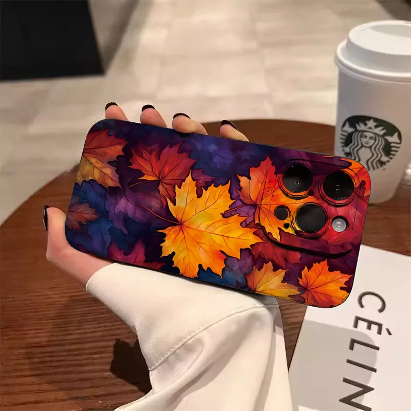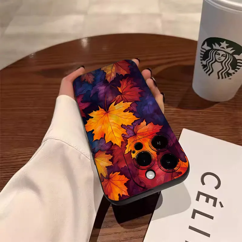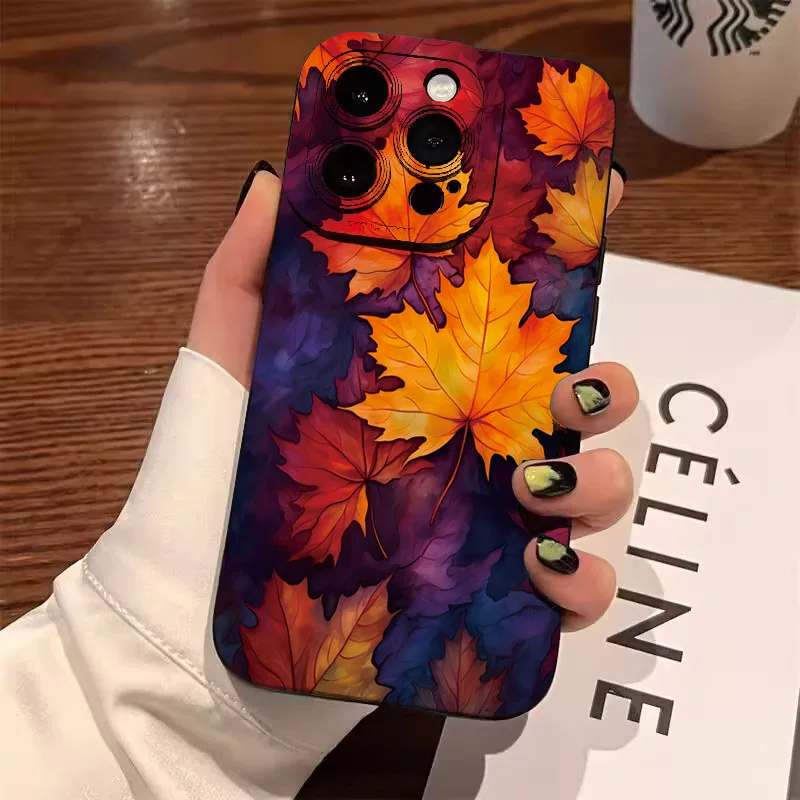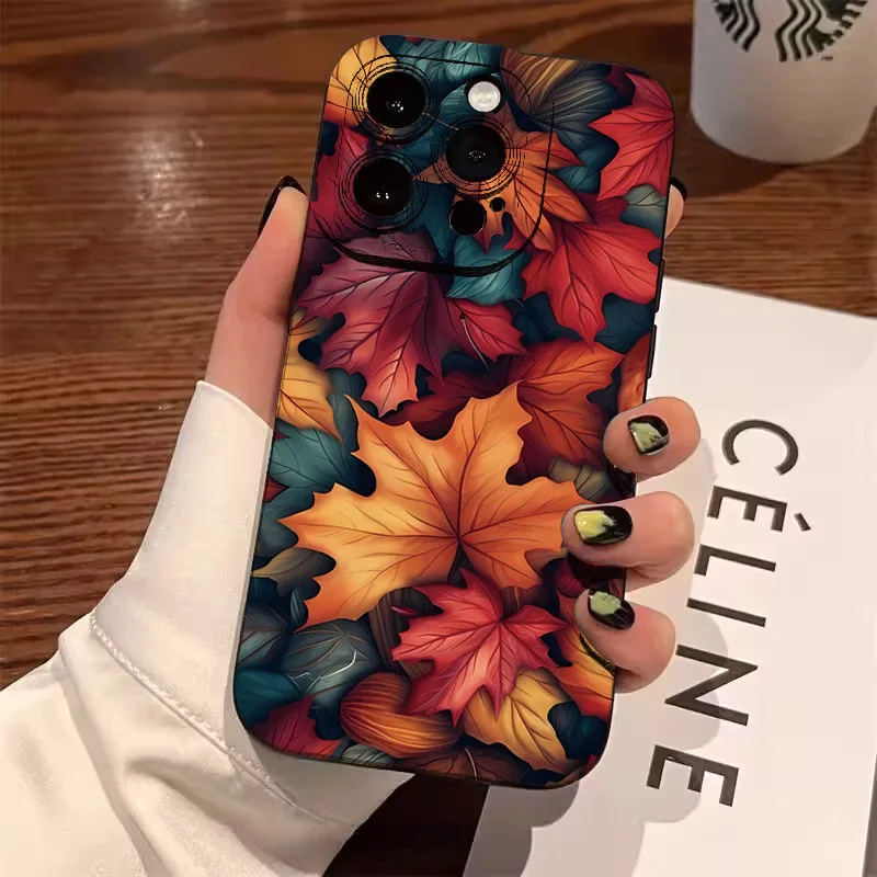 Funda de teléfono con diseño de hoja de otoño para iPhone 17 16 15 13 12 14 12 11 Pro Max Air X XS XR 7 8Plus 16e, funda de silicona suave a prueba de golpes