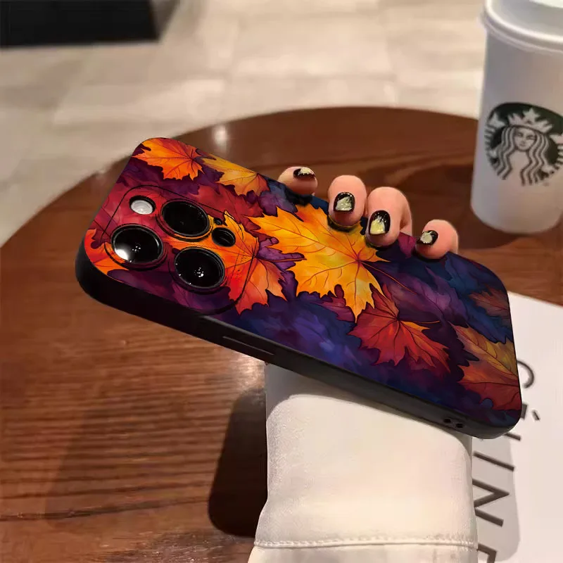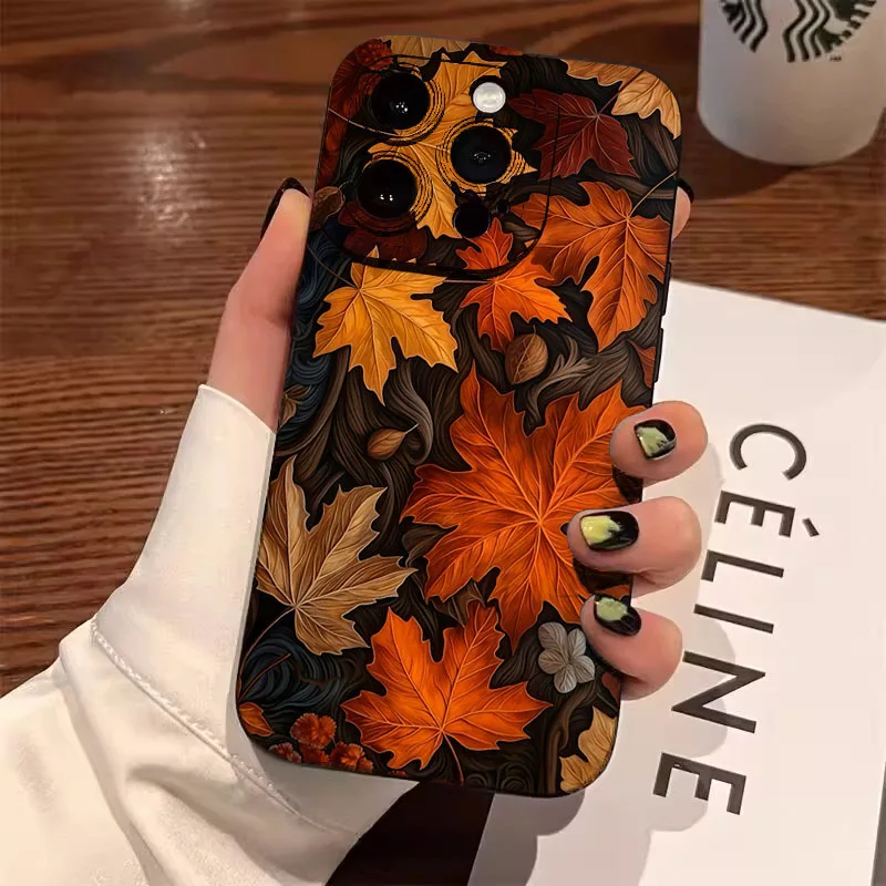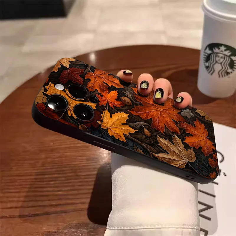 Funda de teléfono con patrón de hojas de otoño para iPhone 17 16 15 13 12 14 12 11 Pro Max Air X XS XR 7 8Plus 16e funda de silicona suave a prueba de golpes