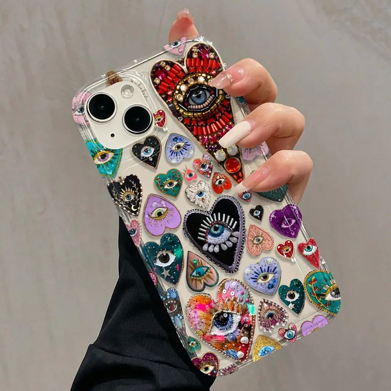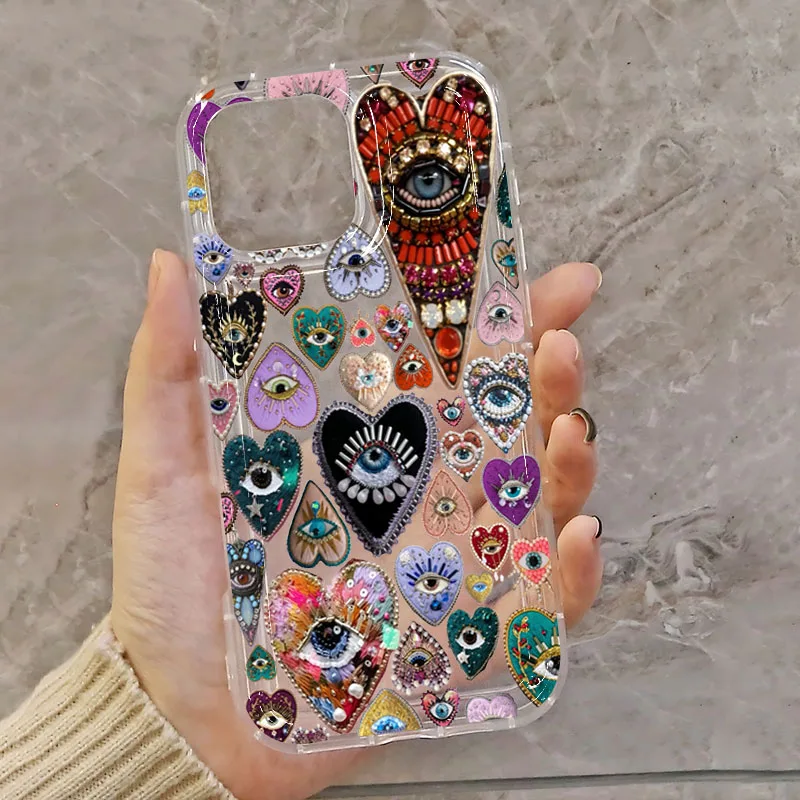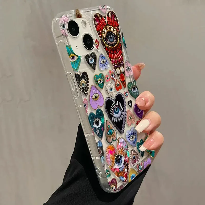 Funda de teléfono con patrón de hormiga de ojo en forma de corazón para iPhone 11 12 13 14 15 16 Pro Max XS X XR 7 8 Plus SE2 16E, funda suave transparente