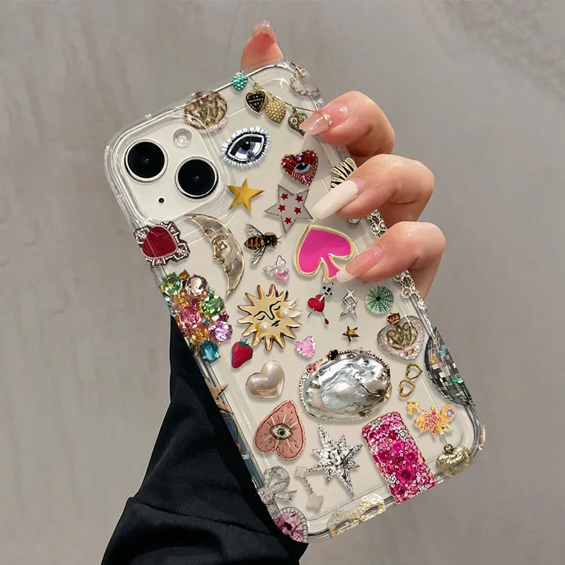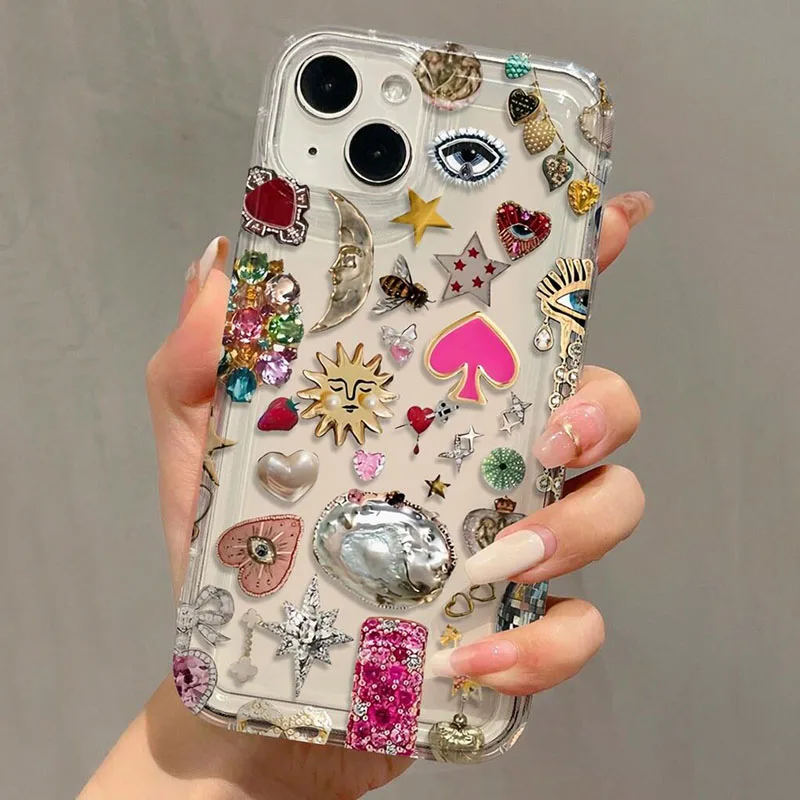 Funda de teléfono con diseño de hormiga y ojo en forma de corazón con Airbag para iPhone 11 12 13 14 15 16 Pro Max XS X XR 7 8 Plus SE2 16E, funda suave transparente