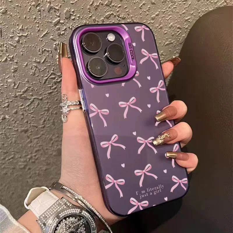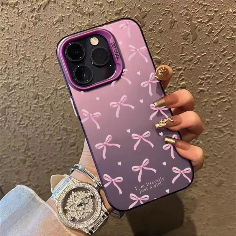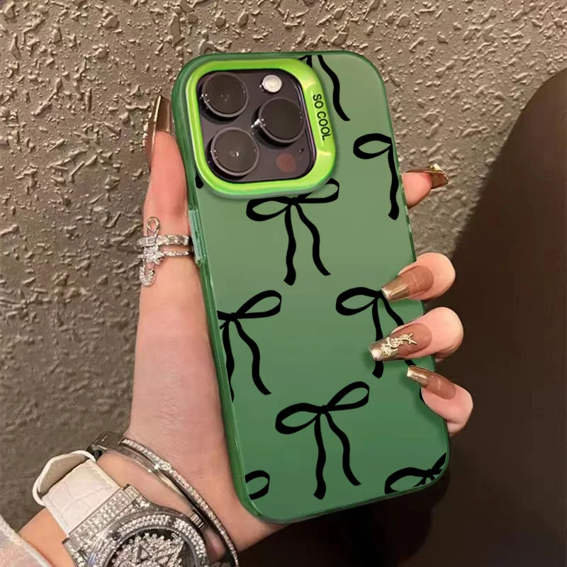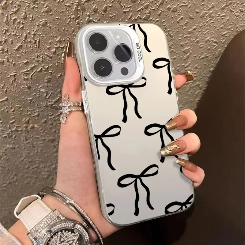 Funda de teléfono con diseño de lazo y corazón de amor para iPhone 16 Pro Max 15 14 13 12 11 XS X XR 7 8 Plus SE 2022, funda trasera dura mate a prueba de golpes