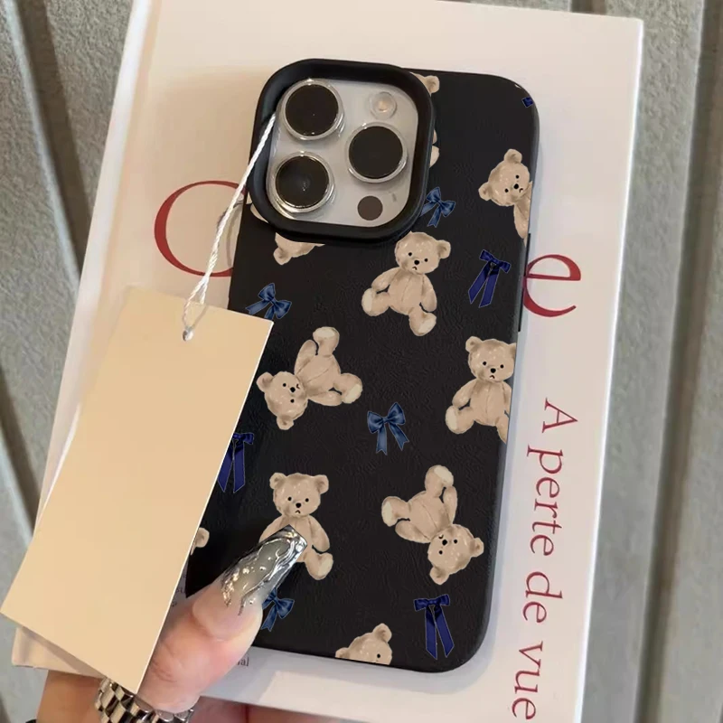 Funda de teléfono con diseño de lazo de oso para iPhone 17 11 12 13 14 15 16 Pro Max Plus 17 Air X XS Max XR, funda trasera de silicona suave
