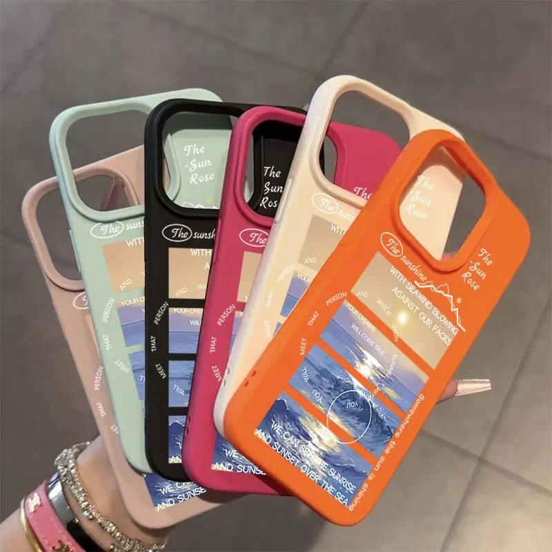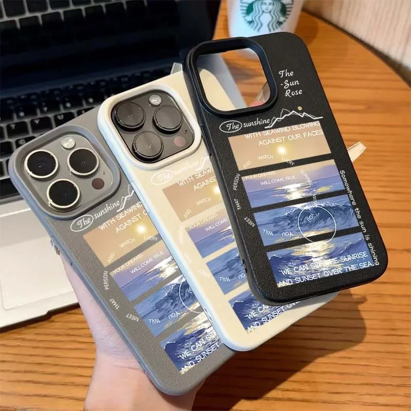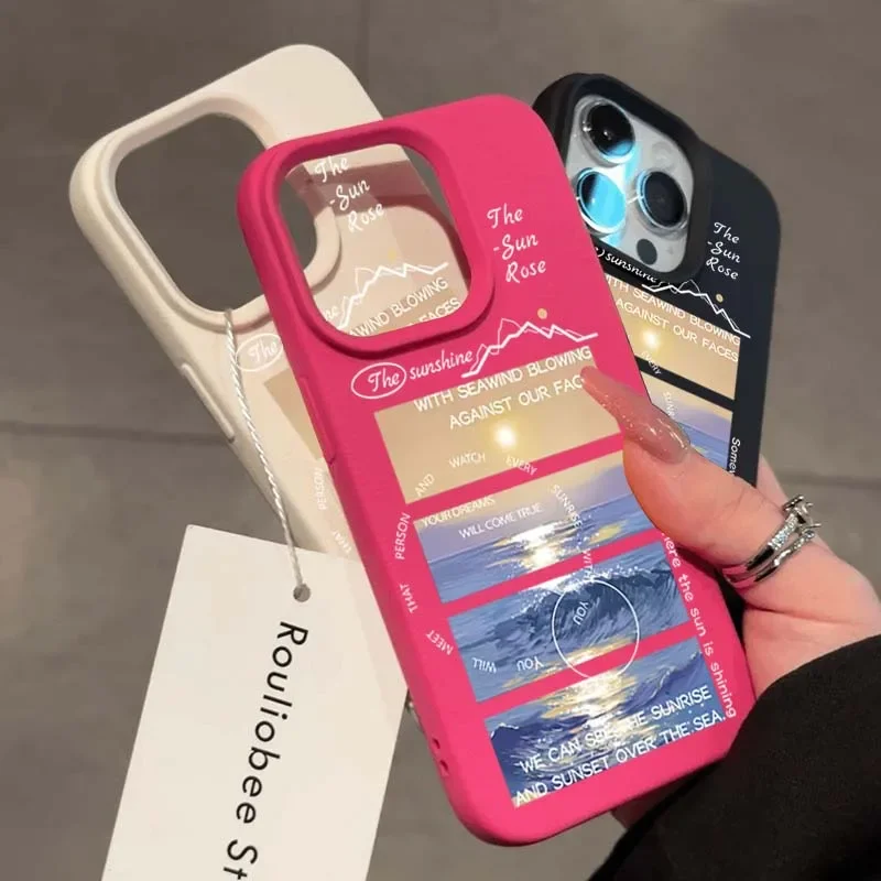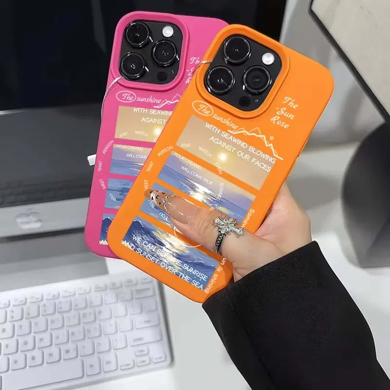 Comprar Funda de teléfono con diseño de lichi de mar y amanecer para iPhone 16, funda de TPU a prueba de golpes para iPhone 16e 15 14 13 12 11 Pro Max XS X XR 16 Plus
