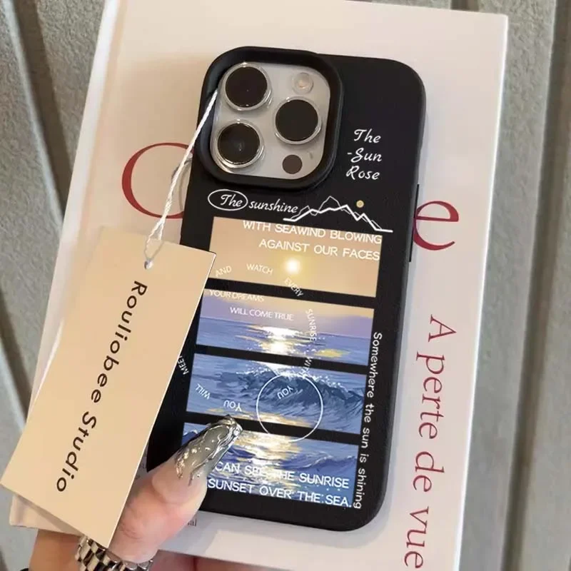 Funda de teléfono con diseño de lichi de mar y amanecer para iPhone 16, funda de TPU a prueba de golpes para iPhone 16e 15 14 13 12 11 Pro Max XS X XR 16 Plus