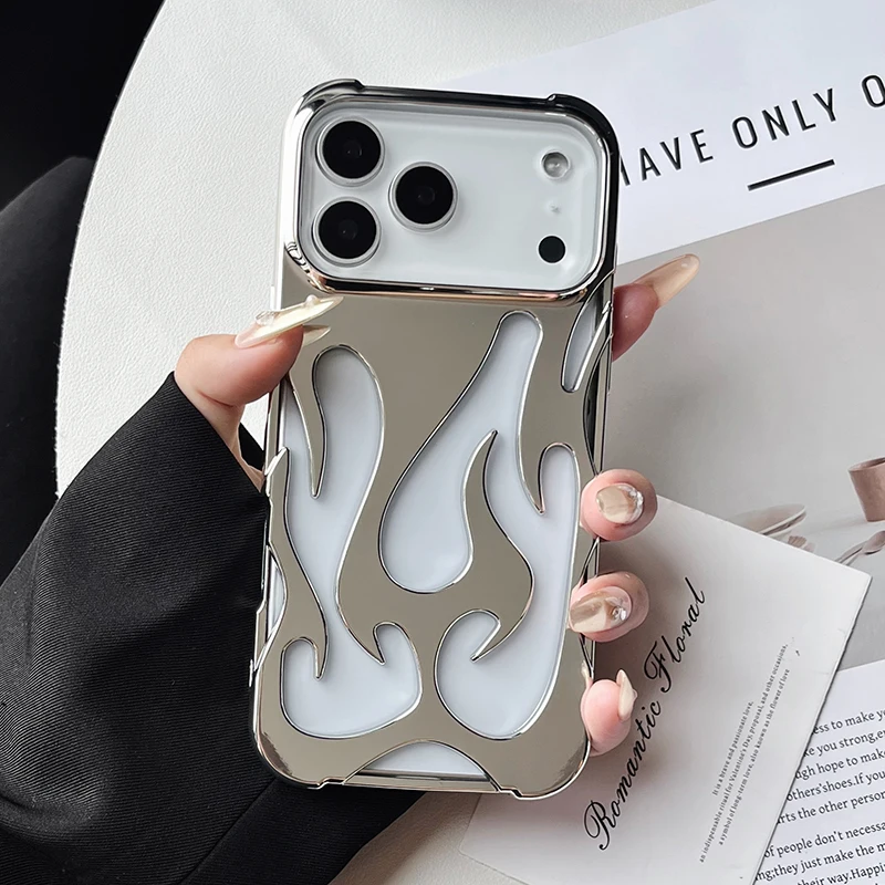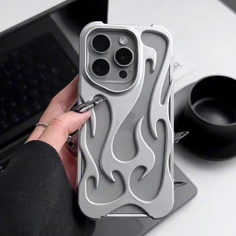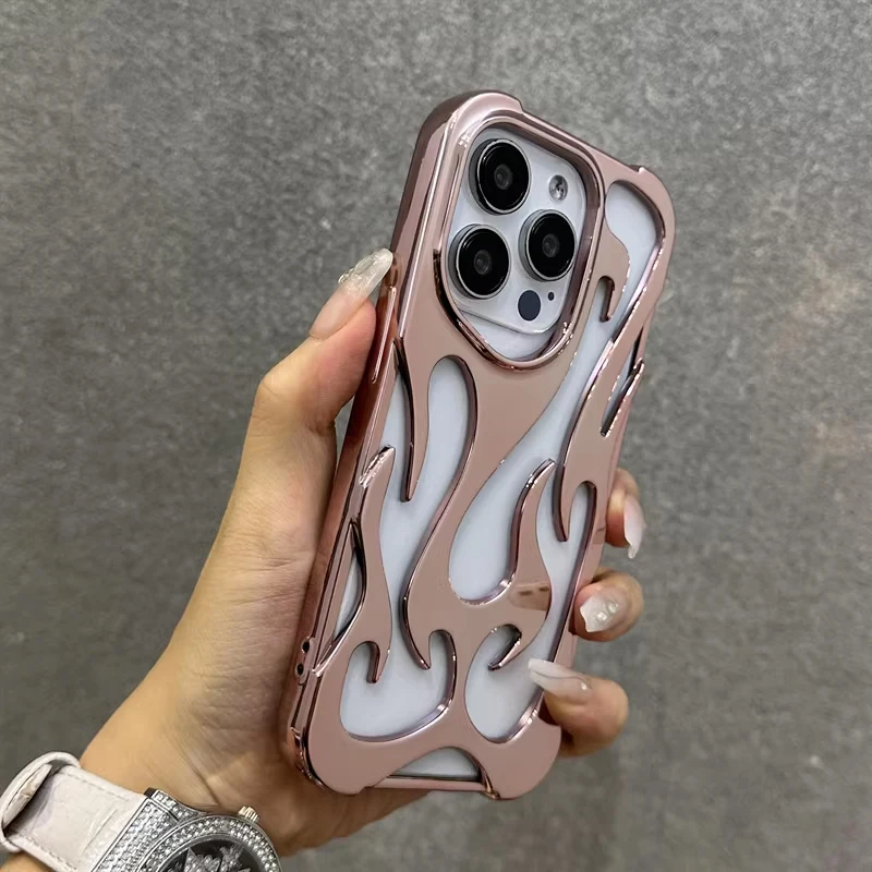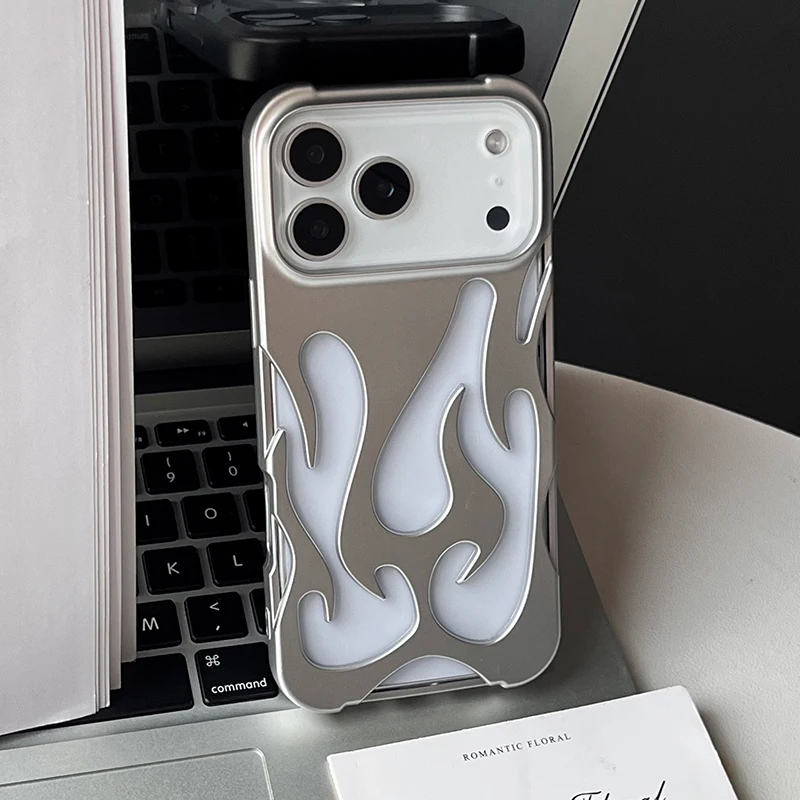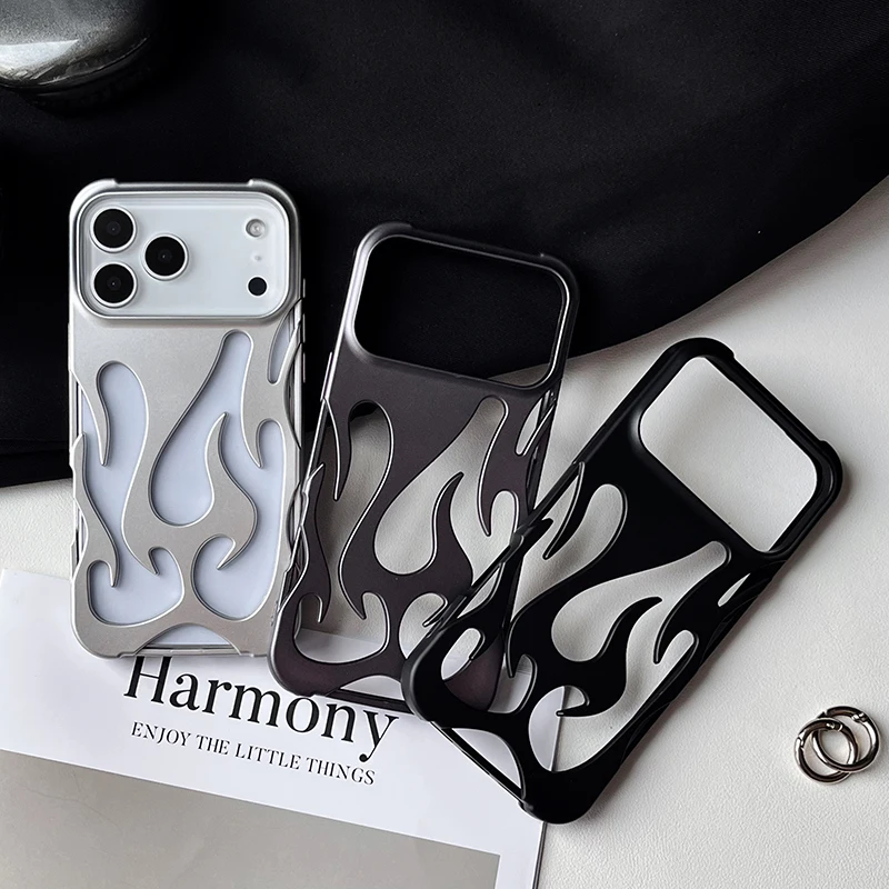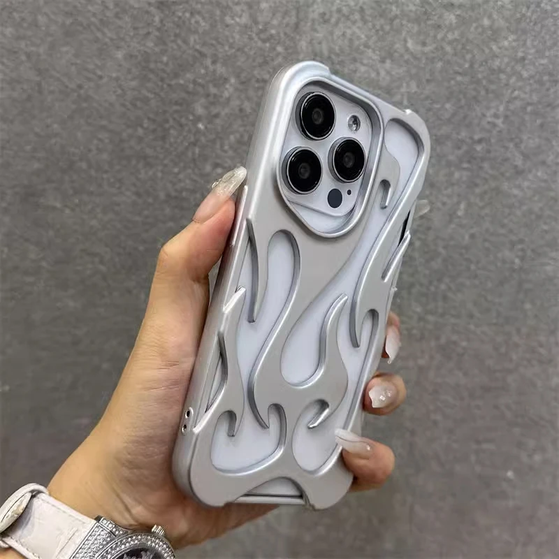 Funda de teléfono con patrón de llama 3D hueca a la moda para iPhone 15 14 13 11 17 Air 16 Pro Max 15 Plus, funda trasera suave a prueba de golpes y fresca