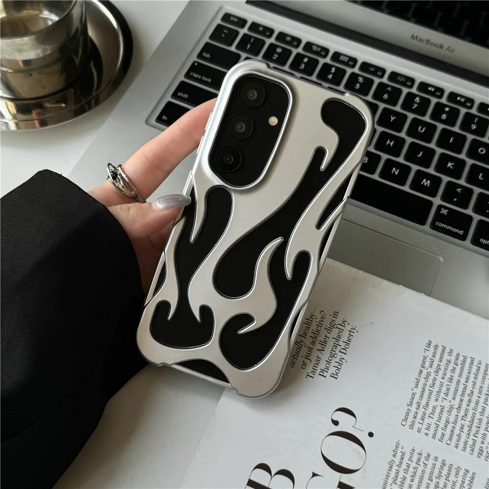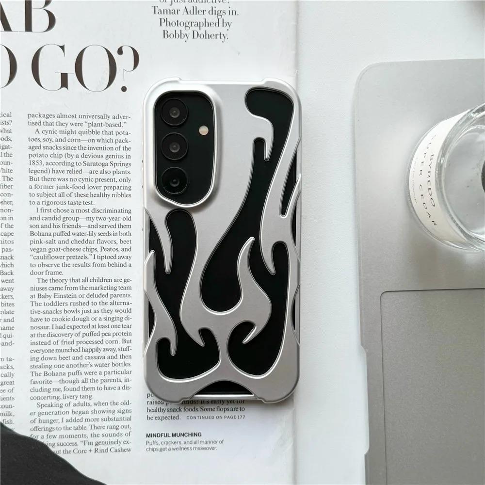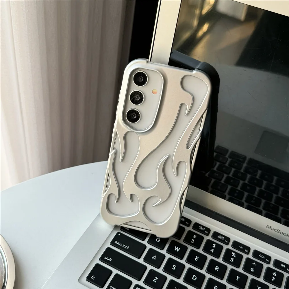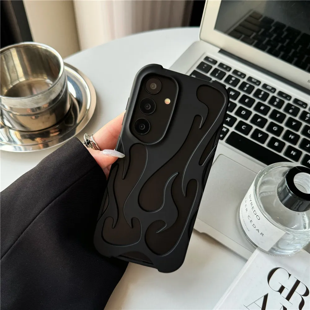 Funda de teléfono con patrón de llama mate 3D para Samsung S25 Ultra S24 S22 S23 A16 A06 A15 A55 A14 A54 Funda de silicona suave hueca de moda