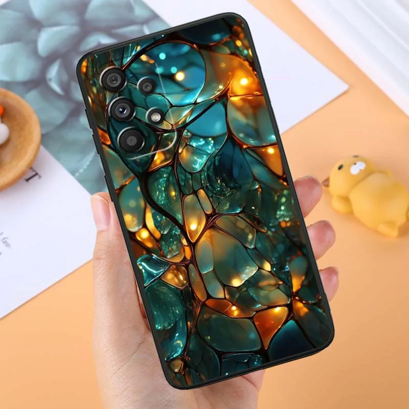 Funda de teléfono con diseño de lujo de arte creativo para Samsung A73 A72 A71 A55 A54 A53 A52 A51 A13 A22 A16 A15 A05s A14 A05 A06 5G negro