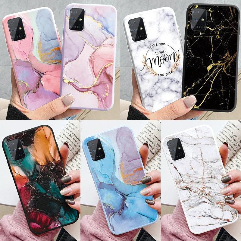 Comprar Funda de teléfono con diseño de mármol para Samsung Galaxy A51 A71 4G 5G, Funda protectora suave para Samsung A71 A 71, Coque de silicona