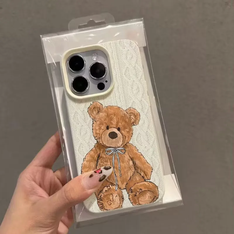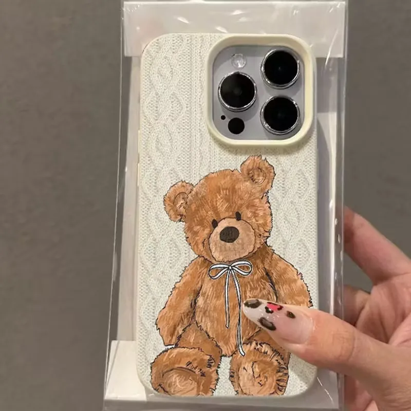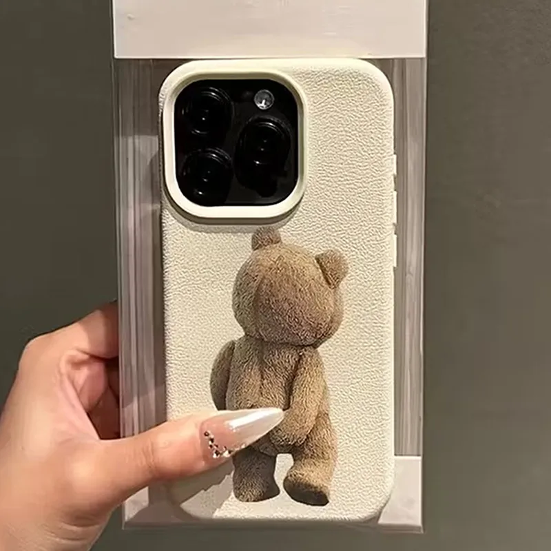 Funda de teléfono con patrón de oso táctil, bonita funda de silicona suave para iPhone 11 12 13 14 15 17 Pro Max XS X XR 16E 16 Plus 17 Air