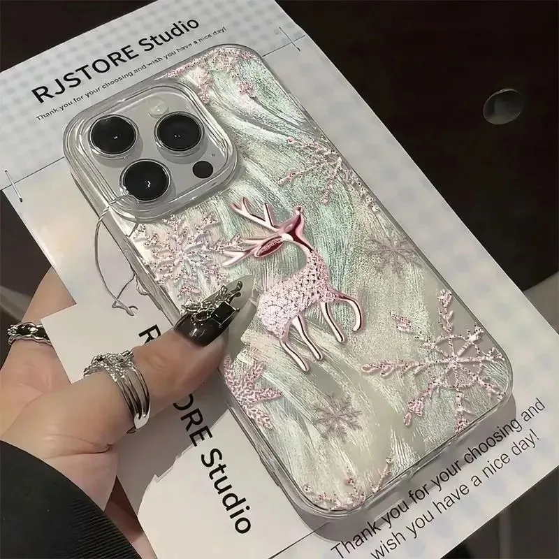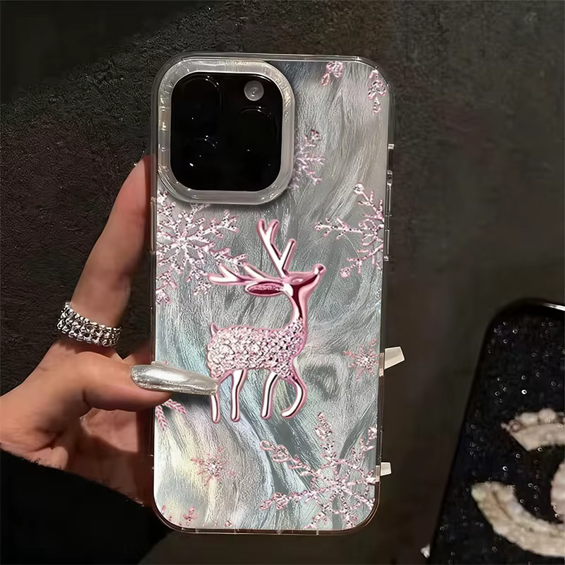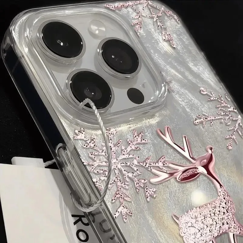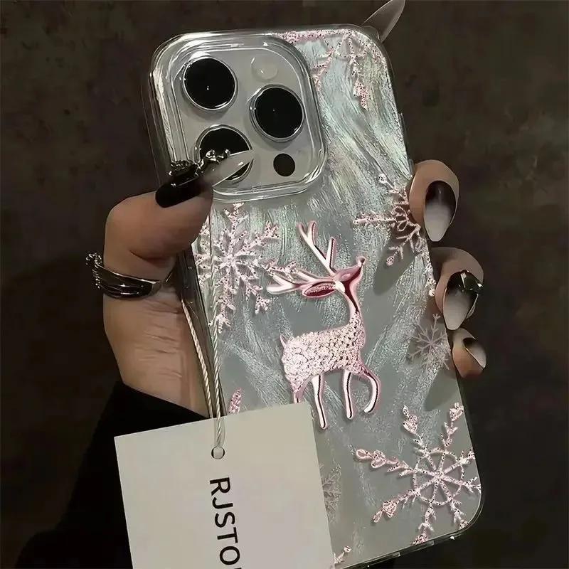 Funda de teléfono con diseño de reno y copo de nieve rosa para Samsung Galaxy A56 A55 A54 A53 A36 A26 A16 5G S25 Ultra S24 FE S23 Plus S22