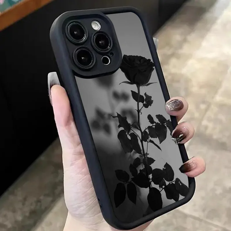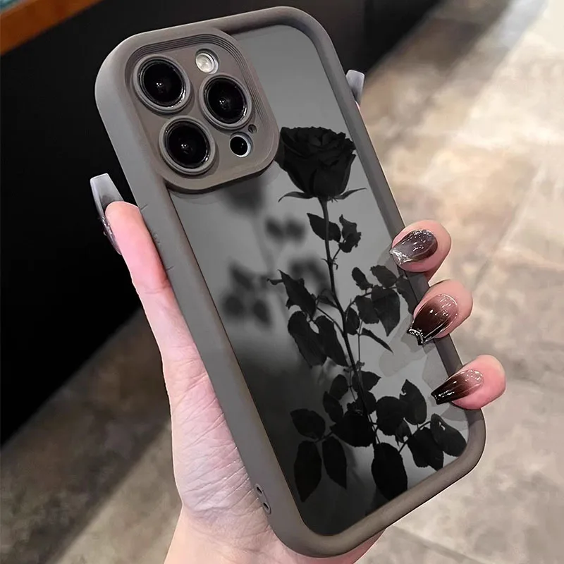 Funda de teléfono con diseño de rosas y tema oscuro minimalista de flores para Xiaomi Redmi 13 12 12C 13C 14C Redmi Note 14 Pro Plus 5G 12 11 10