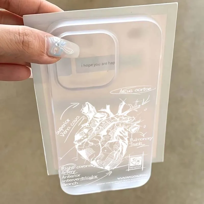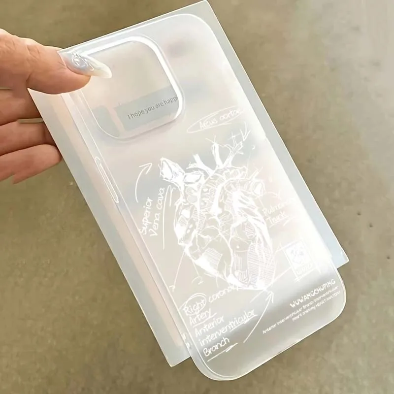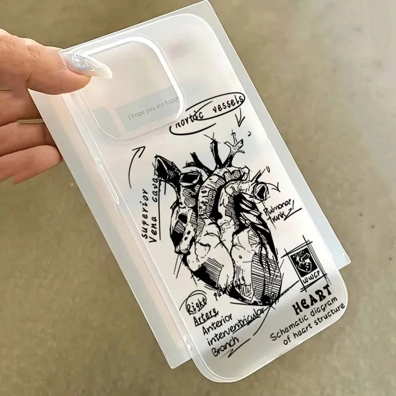 Funda de teléfono de diseño Simple esmerilada con gráfico de corazón blanco para iPhone 16 15 Pro Max 11 12 13 14 16 Pro XS XR 7 8 Plus, funda a prueba de golpes
