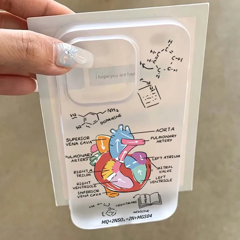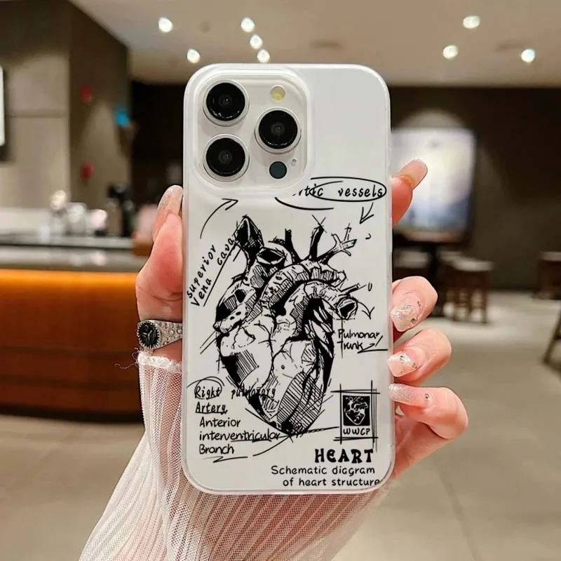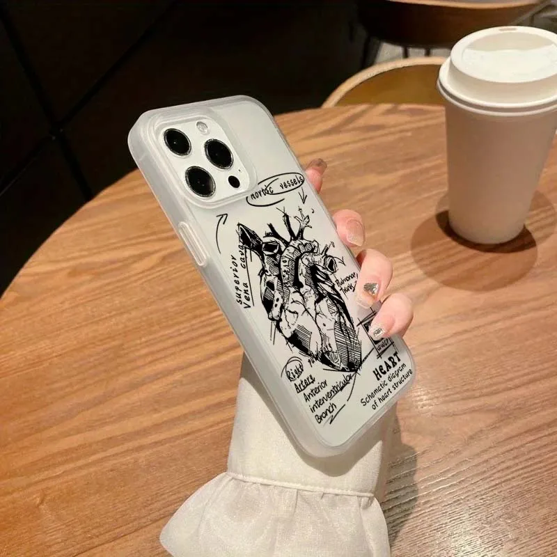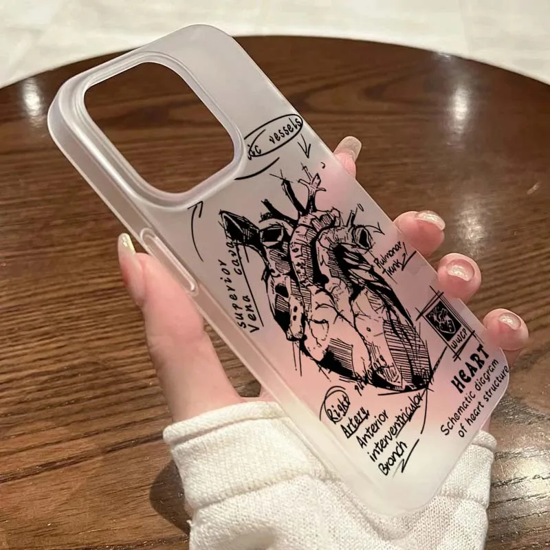 Funda de teléfono de diseño Simple esmerilado con gráfico de corazón blanco para iPhone 16 15 Pro Max 11 12 13 14 16 Pro XS XR 7 8 Plus cubierta a prueba de golpes