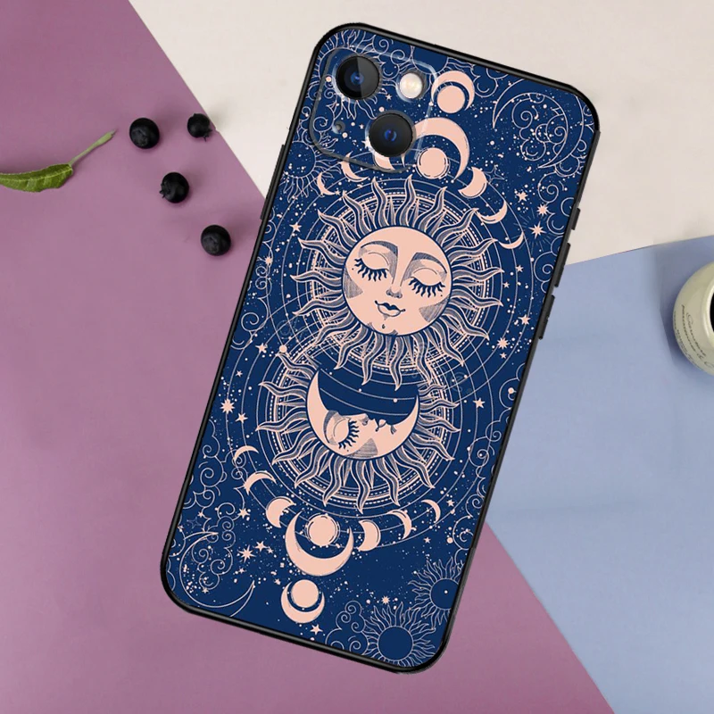 Funda de teléfono con diseño de Tarot y Luna de bruja para iPhone 11, 12, 13, 14, 16, 15 Pro Max Mini 7, 8 Plus X XR XS Max, funda de parachoques