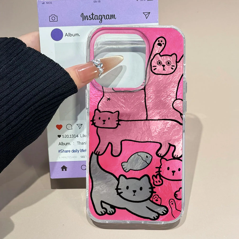 Funda para teléfono con patrón de vórtice degradado de gato con estampado rosa