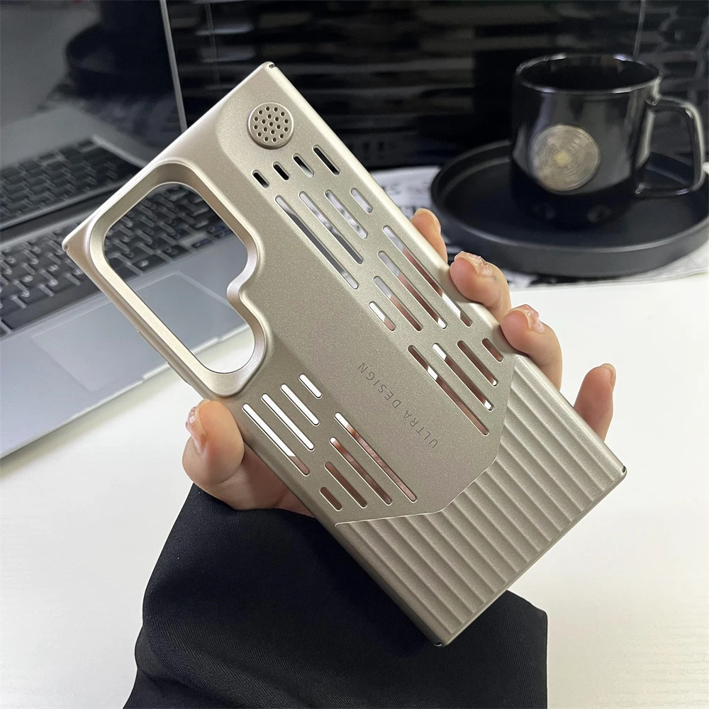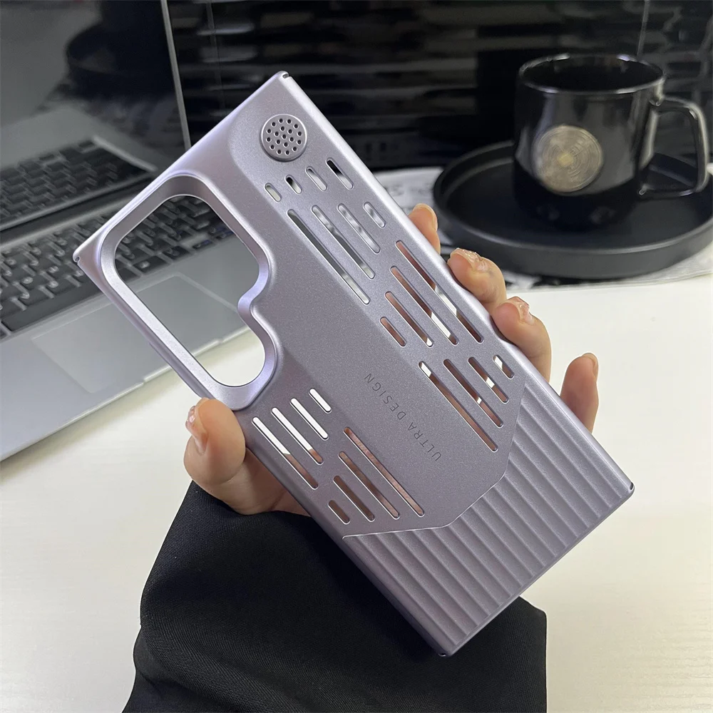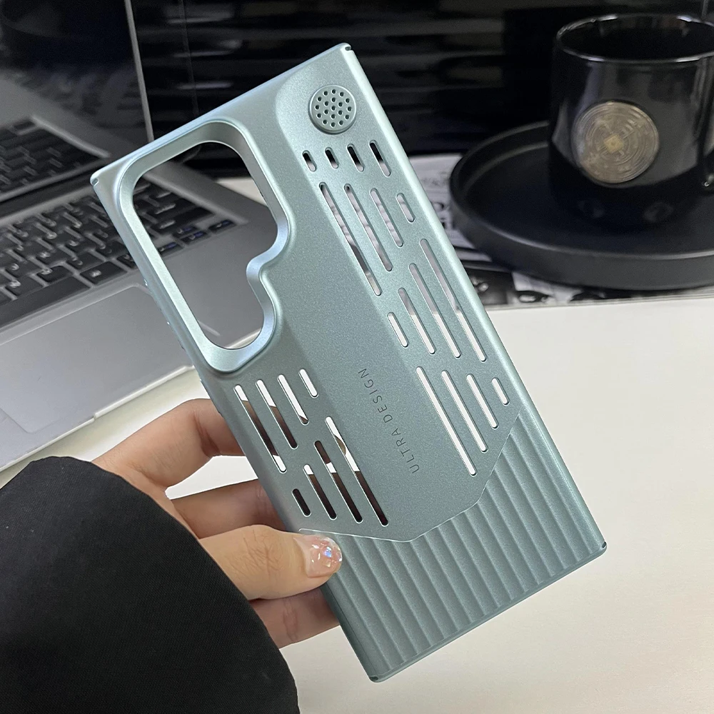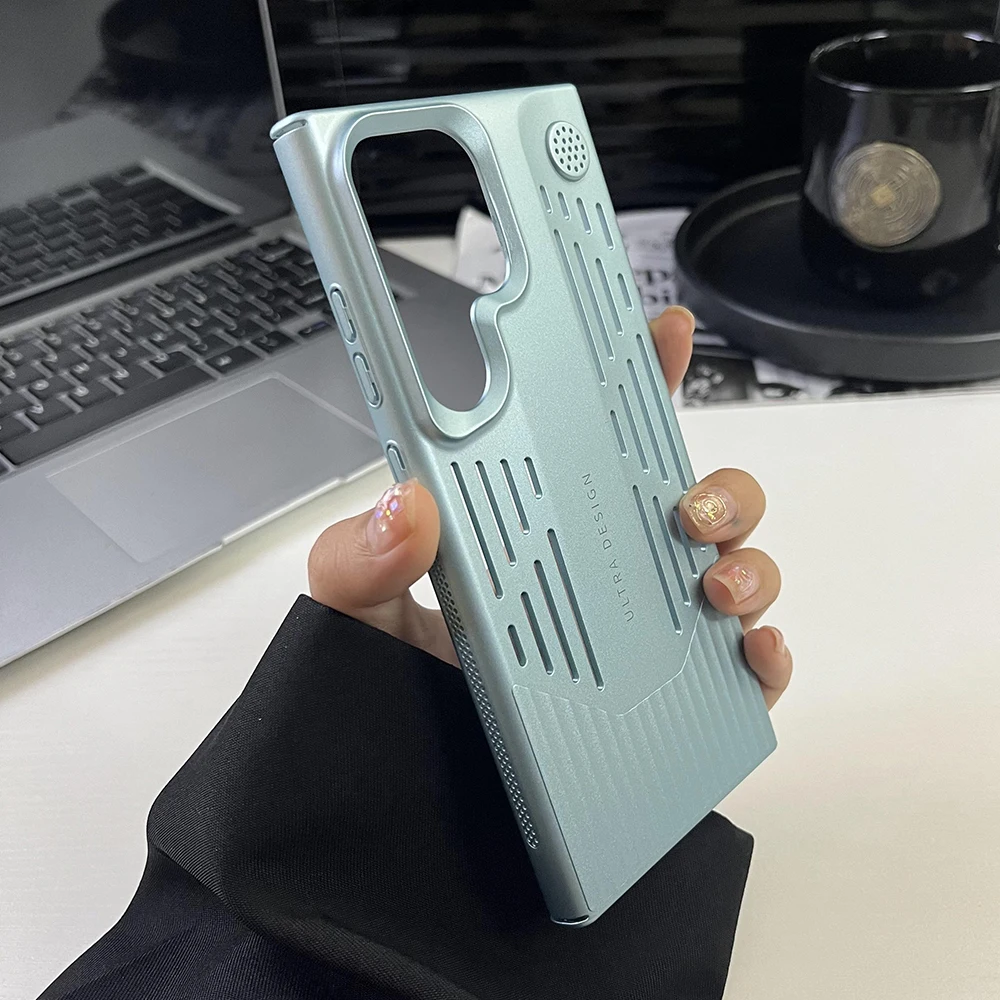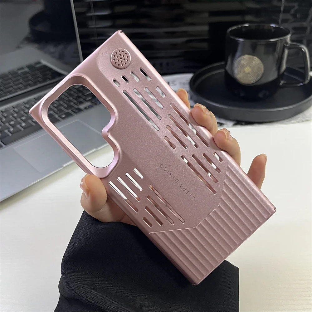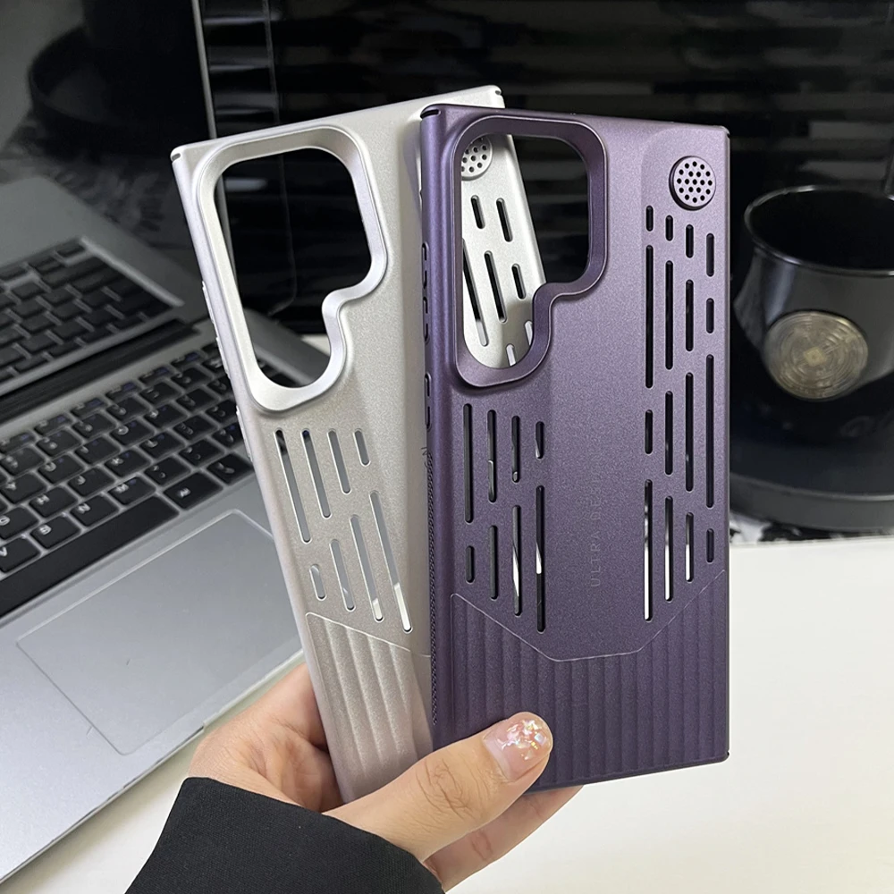 Funda de teléfono con disipación de calor de PC de Color metálico chapado de lujo para Samsung S23 S24, funda protectora a prueba de golpes con forma de hoja Ultra