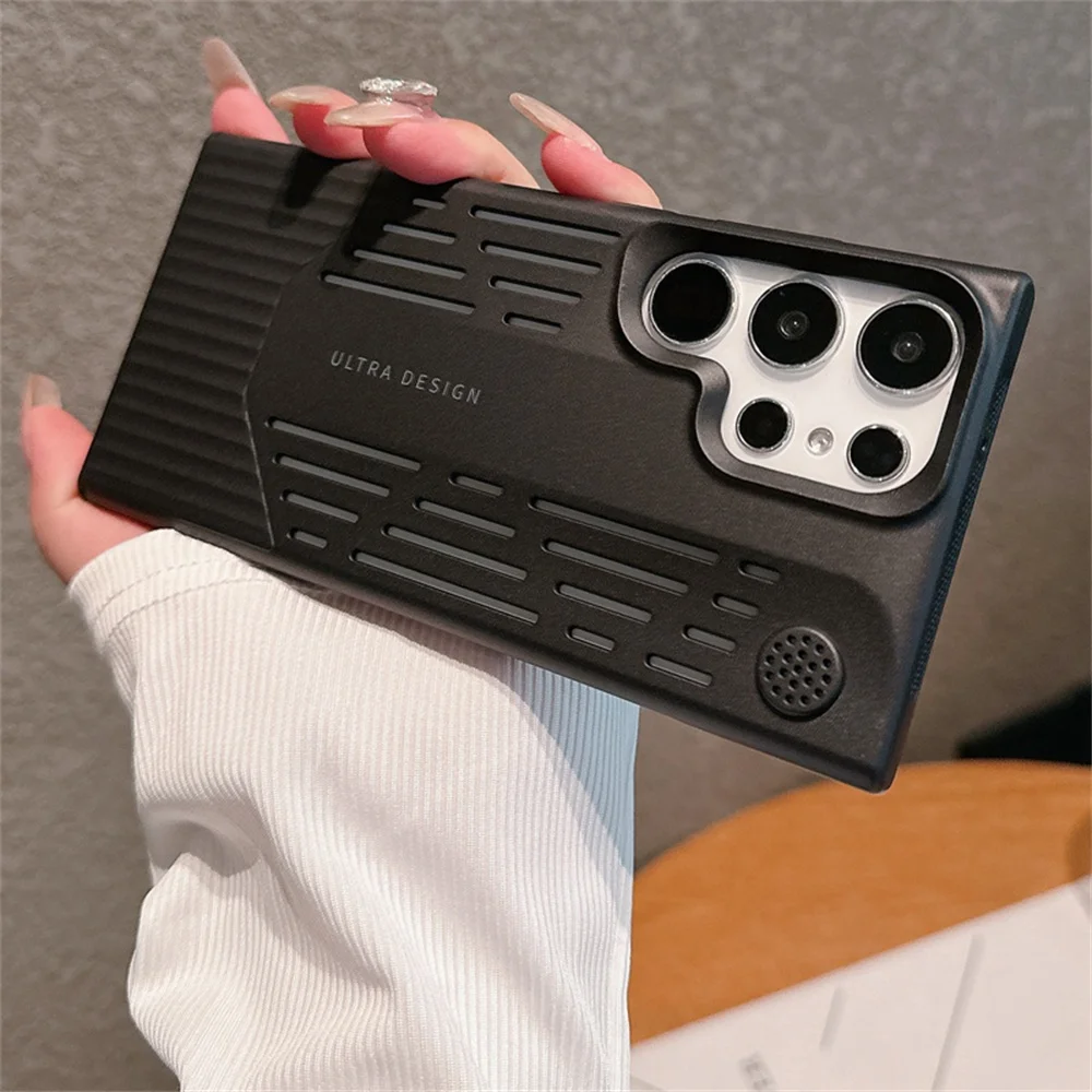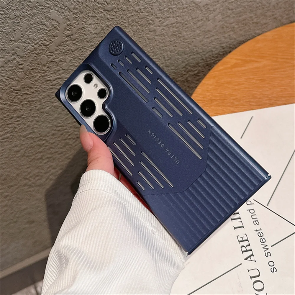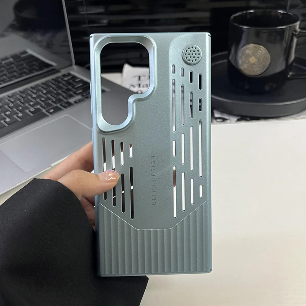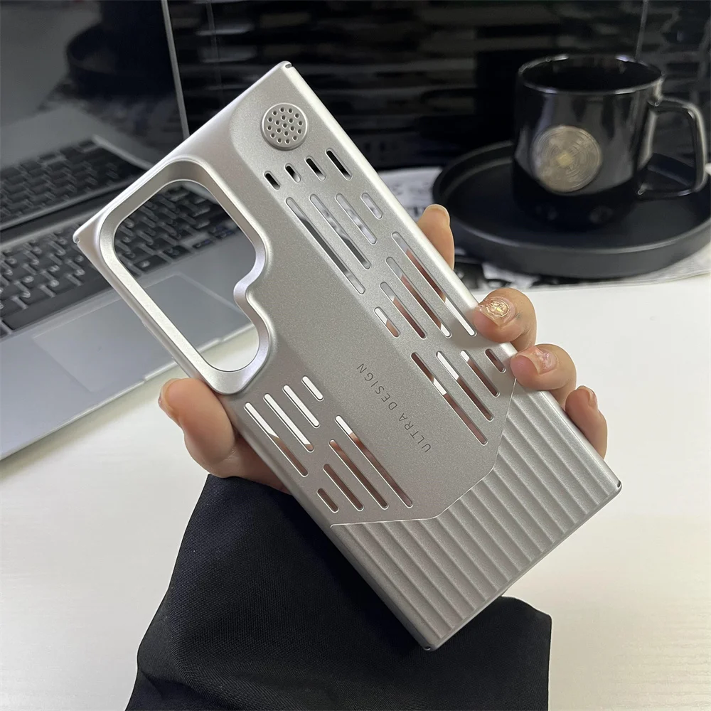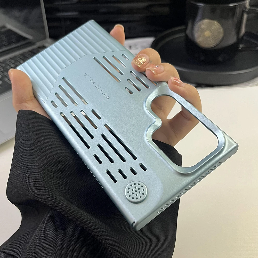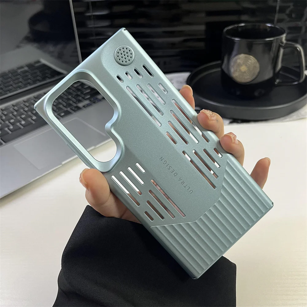 Funda de teléfono con disipación de calor de PC de Color metálico chapado de lujo para Samsung S23 S24, funda protectora a prueba de golpes con forma de hoja Ultra