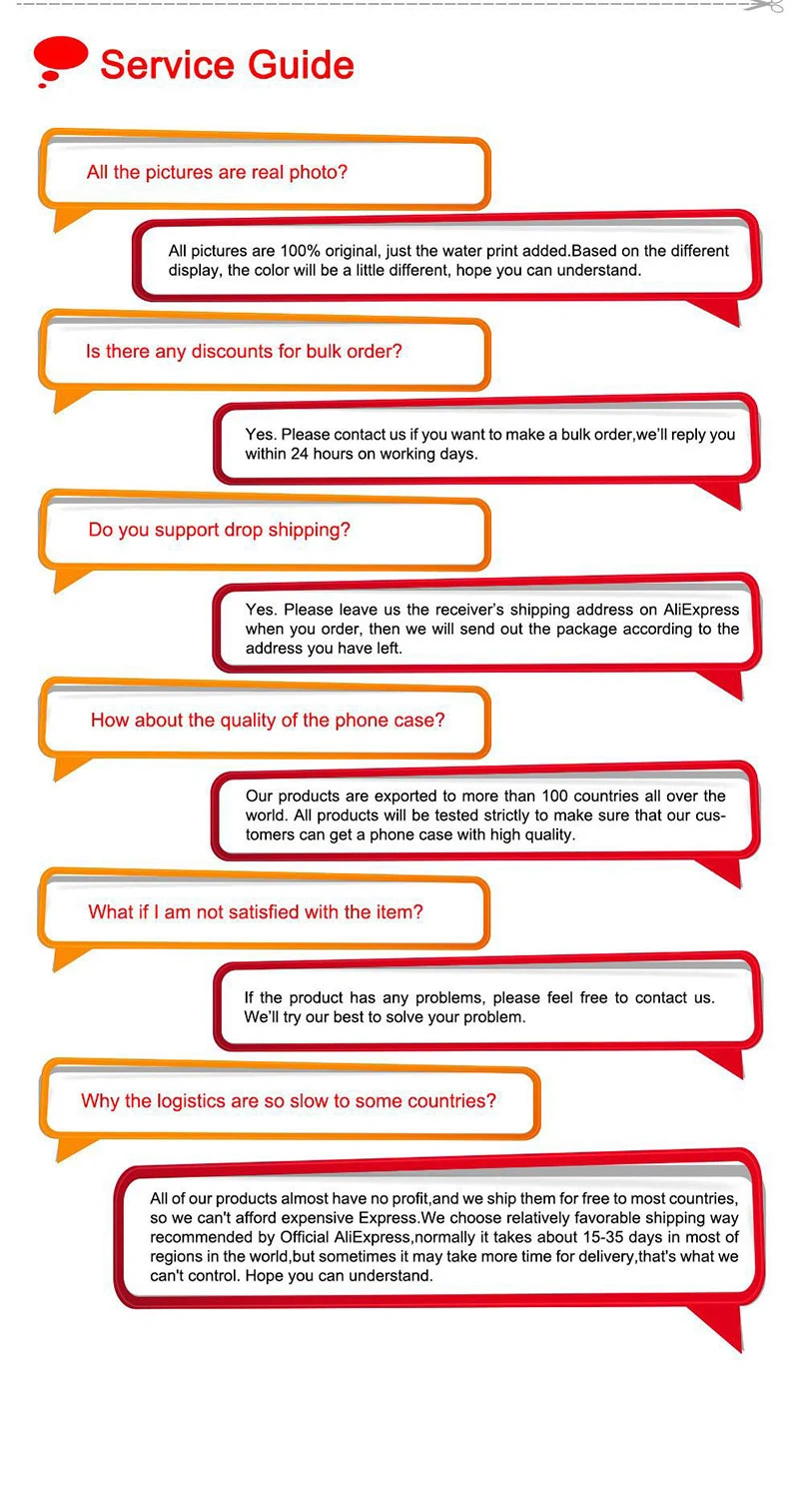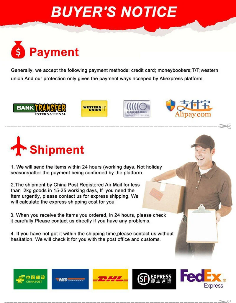 1) Solo enviaremos a la dirección predeterminada en el pedido si no nos informa. Asegúrese de que su dirección de envío sea CORRECTA.