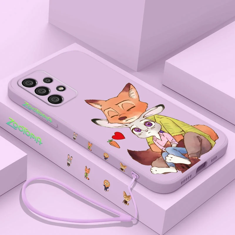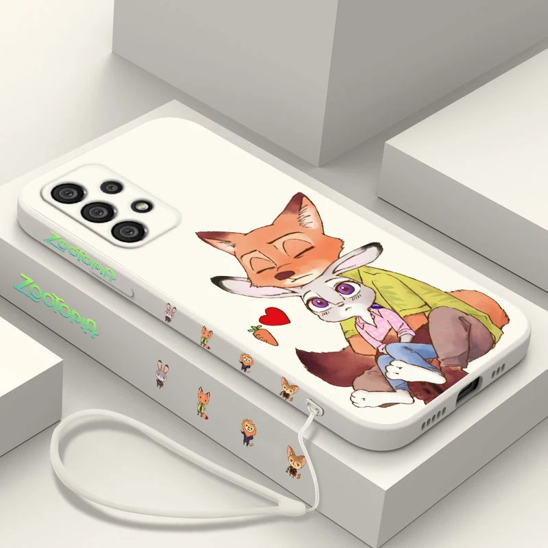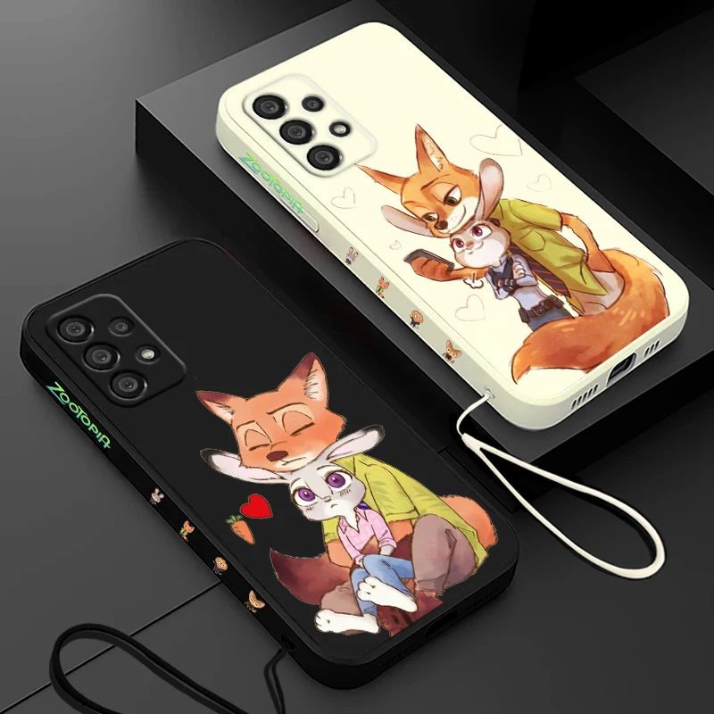 Comprar Funda de teléfono Disney Zootopia Nick Wilde para Samsung, A55, A53, A33, A52, A32, A71, A51, A21S, A35, A25, 5G, cuerda líquida izquierda