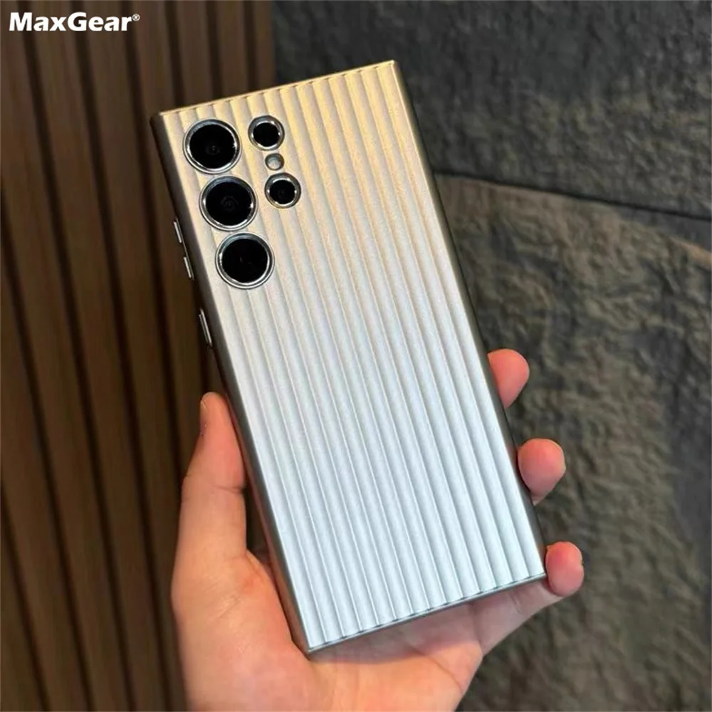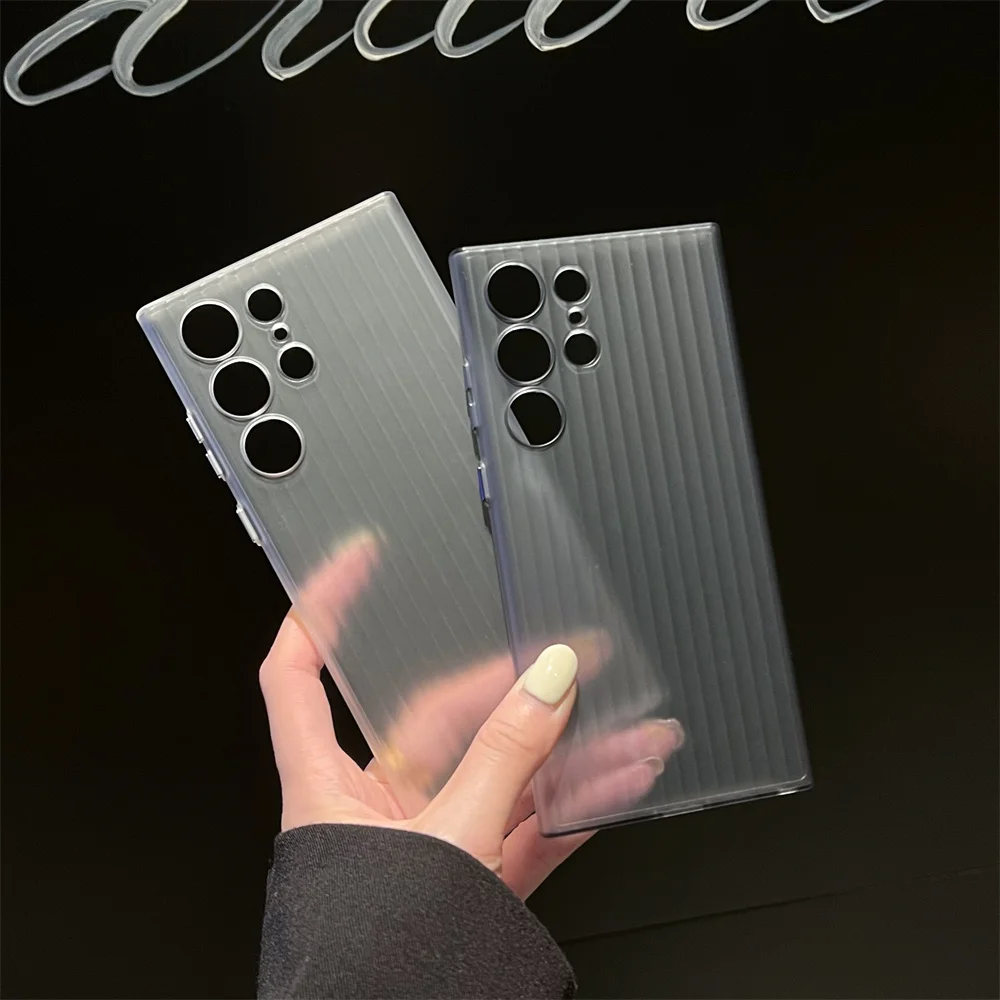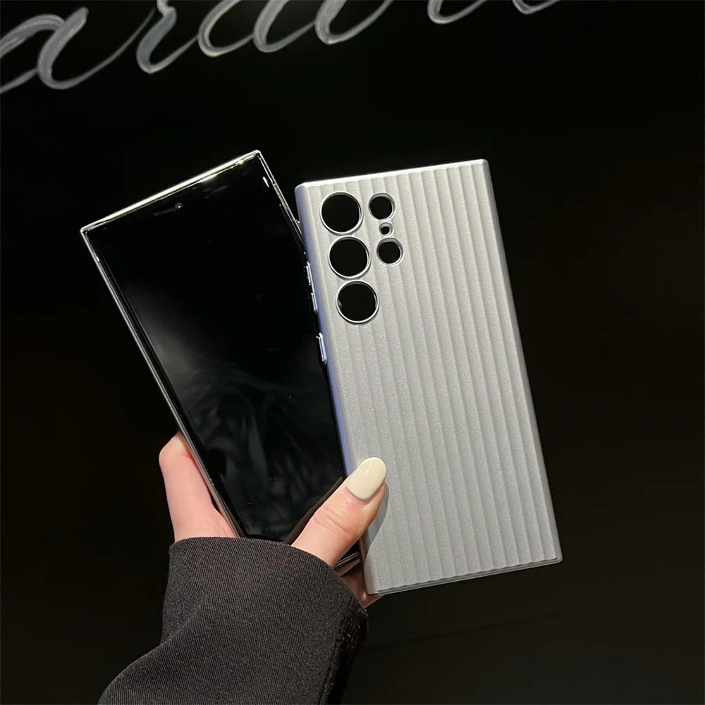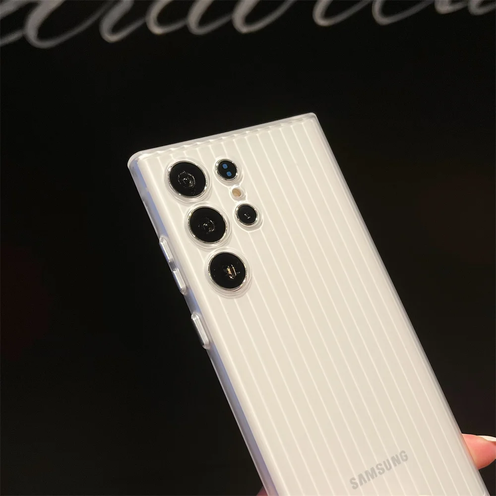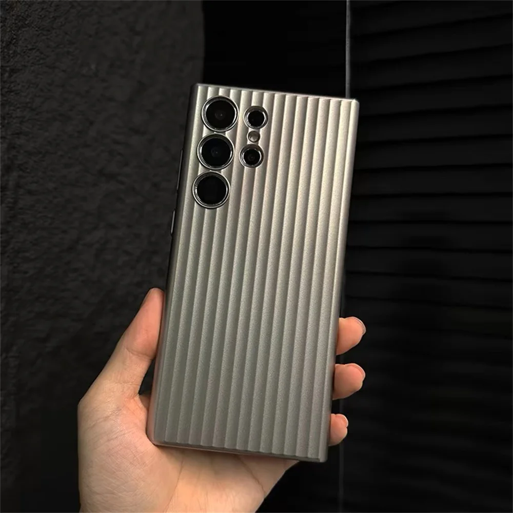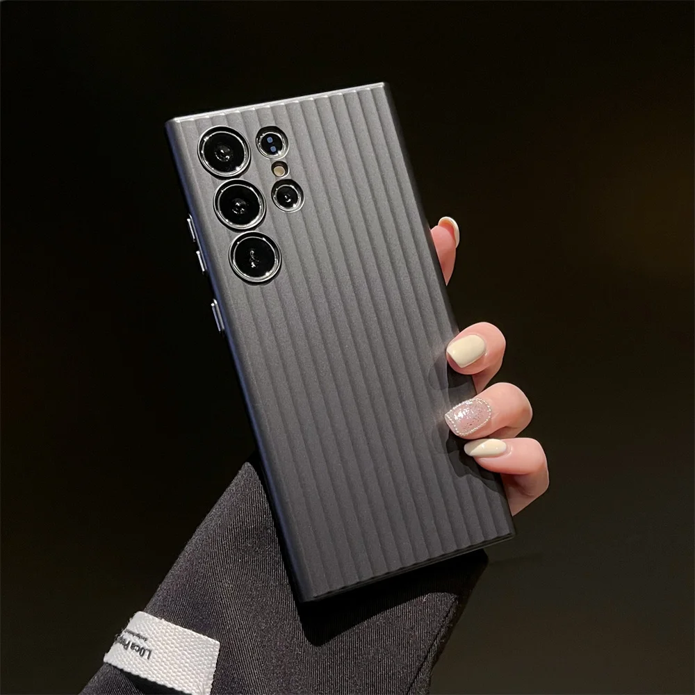 Funda de teléfono dura mate AG de rayas de lujo para Samsung Galaxy S24 S23 Plus, protección de cámara Ultra oficial, cubierta de armadura de plástico