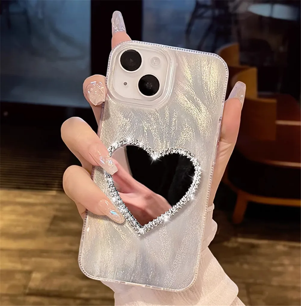 Funda de teléfono con espejo de corazón de diamante de lujo para Honor X8 X8A X8B X6S X6A X6B X7A X7B X7C X9A X9B X9C X5B cubierta suave a prueba de golpes para láser
